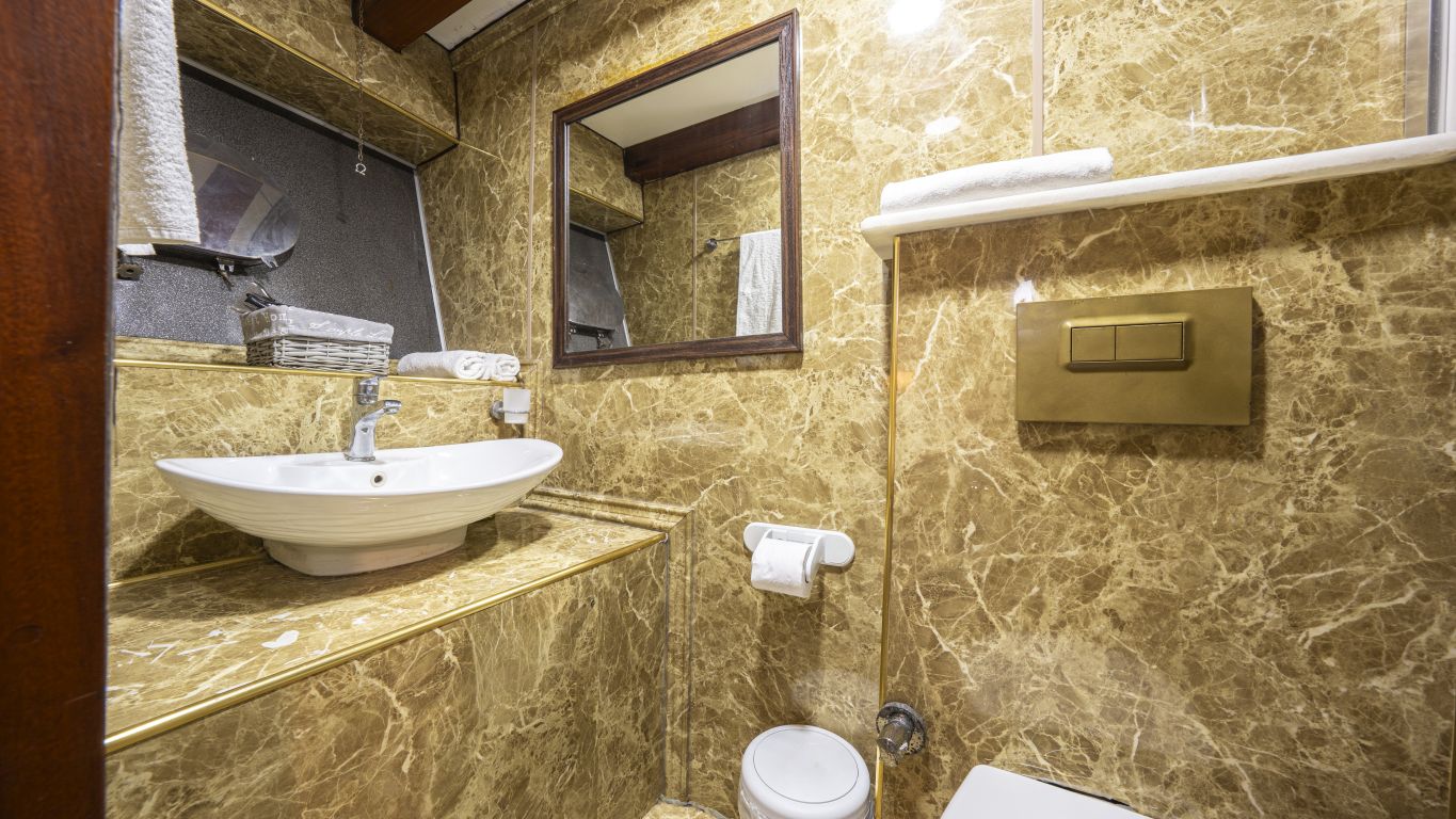 La Goélette VIP Elara 1 est une belle Goélette de 43 mètres conçue pour ses invités et rénovée en 2019. Elle dispose de 12 cabines de luxe pouvant accueillir jusqu'à à 24 marins turcs et étrangers. Avec 8 membres d'équipage sympathiques et hospitaliers à bord, vous vivrez une croisière bleu clair inoubliable en Turquie ou dans les îles grecques. elle vous offre également une grande terrasse avec table à manger, bar, jacuzzi et espaces de repos sur le deck. Vous pourrez pratiquer des sports nautiques, de la plongée en apnée, de la pêche ou de la lecture. Elara 1 est l'une des Goélettes les plus grandes et les plus récentes pour les grands groupes, les Goélettes vertes familiales et les croisières de conférence d'affaires. VIP Goélette Elara 1 vous attend lors de vos vacances en yacht privé sur la côte turque et les îles grecques. |