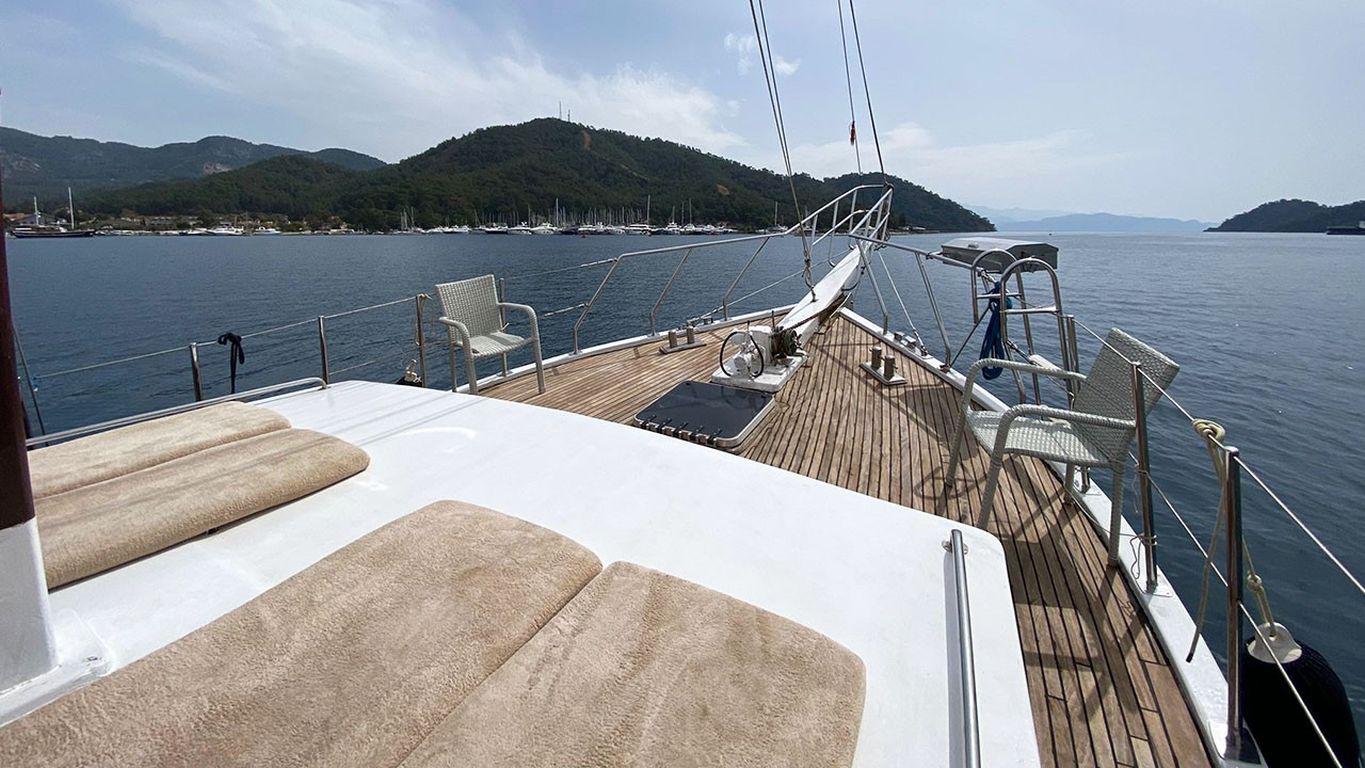 | Le Gulet Maedi est un yacht traditionnel en bois de 17 mètres, entièrement rénové en 2022, alliant charme classique et confort moderne. Le bateau dispose de trois cabines doubles, chacune équipée d’une salle de bain privative avec douche et WC, et peut accueillir jusqu’à six passagers accompagnés de deux membres d’équipage expérimentés. C’est un choix idéal pour les familles ou petits groupes souhaitant louer un gulet privé à trois cabines en Turquie. Sur le pont arrière, les invités peuvent profiter d’un vaste espace de détente avec coussins, d’une table à manger en plein air et de zones de bronzage confortables. À l’intérieur, le salon offre une atmosphère chaleureuse et conviviale, avec un coin repas supplémentaire, une cuisine entièrement équipée, ainsi qu’un téléviseur, lecteur DVD et système audio. Pour les amateurs d’activités nautiques, le Gulet Maedi met à disposition une annexe Yamaha de 9,9 CV, un canoë, du matériel de plongée avec tuba et des équipements de pêche. Des jouets nautiques supplémentaires tels qu’un jet ski, un seabob ou une planche de paddle peuvent être organisés sur demande. Naviguant entre Bodrum, Marmaris, Göcek et Fethiye, le Gulet Maedi offre une croisière bleue paisible dans les baies turquoise de la Turquie, alliant confort, intimité et esprit d’aventure. C’est une option parfaite pour ceux qui recherchent une expérience mêlant détente, découverte et authenticité. |