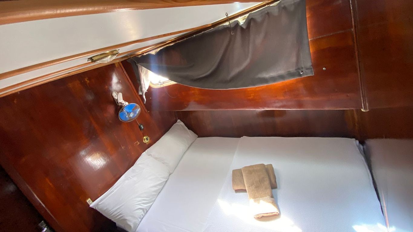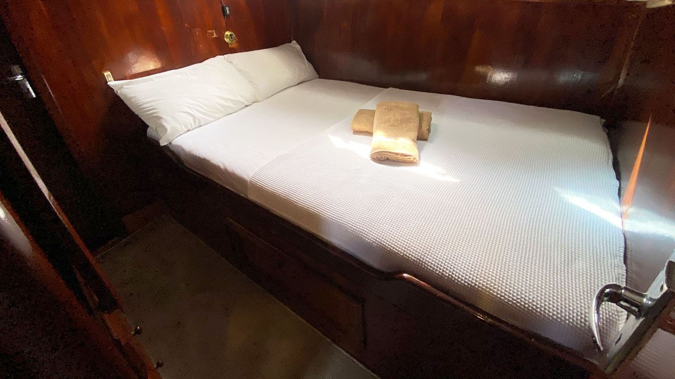| Jusqu'à 6 personnes; 3 cabines doubles, cabine de douche et toilettes de type maison dans toutes les cabines, cabines d'équipage séparées. |