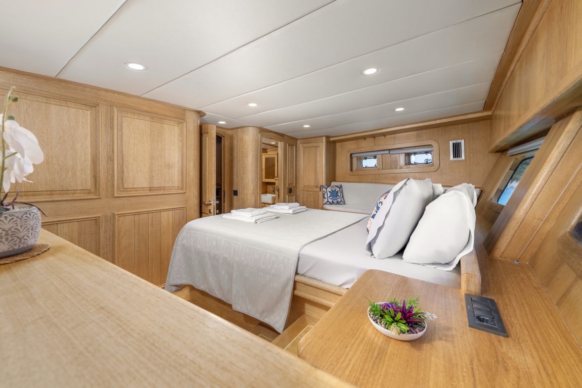| Jusqu'à 8 personnes ; 2 cabines principales, 1 double, 1 cabine twin, cabine de douche et toilettes dans toutes les cabines, cabines d'équipage séparées. |