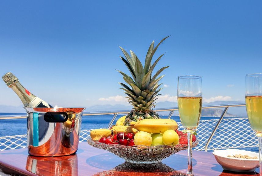 - Catering et boissons pour yacht Vous pouvez choisir des options de demi-pension ou de pension complète.
