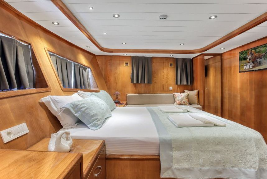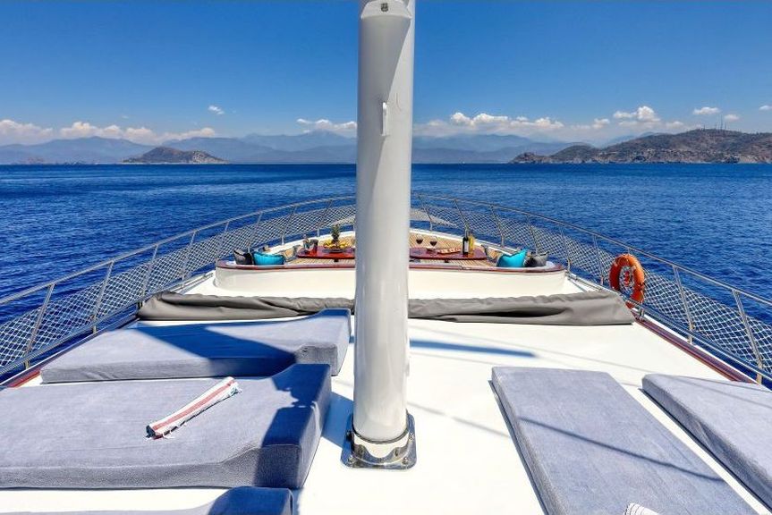 | Le Gulet Maya est une goélette en bois de 26 mètres, lancée en 2022, offrant une interprétation moderne de l’artisanat traditionnel turc. Le navire comprend quatre cabines — deux Master, une Double et une Twin — toutes dotées de salles de bain privatives, pouvant accueillir jusqu’à huit passagers. Sa largeur de 7 mètres garantit des intérieurs spacieux et de larges zones extérieures. Une équipe professionnelle de quatre membres — capitaine, chef et deux matelots — assure un service attentionné tout au long de la croisière. Le salon intérieur est élégamment aménagé avec un bar, une table à manger et des sièges confortables, alliant mobilier classique et contemporain. La cuisine entièrement équipée permet la préparation de plats savoureux. Les équipements de divertissement comprennent un système audio, une TV, des lecteurs DVD/CD, une machine à café, un refroidisseur à vin, des téléphones de cabine, une connexion Internet, un coffre-fort, des sèche-cheveux et la climatisation (disponible jusqu’à 18 heures par jour, y compris la nuit), garantissant un confort maximal. À l’extérieur, le Gulet Maya offre de larges espaces de bronzage, des zones ombragées pour les repas et une vaste poupe, idéale pour profiter des vues imprenables. Pour les amateurs de sports nautiques, un large choix d’activités est proposé : canoë, paddle, ski nautique, wakeboard, ringo, plongée avec tuba et pêche. Des transferts en mer et activités nautiques supplémentaires peuvent être organisés sur demande, grâce à un tender de service complet. Le navire est propulsé par deux moteurs Baudouin de 450 CV, soutenus par deux générateurs Onan de 25 kVA, offrant une vitesse de croisière de 10 nœuds et une vitesse maximale de 13 nœuds. Avec des réservoirs de carburant et d’eau de 5 000 litres et un dessalinisateur, le Maya permet de longues croisières sans interruption. Les systèmes de navigation et de communication (GPS, radar, pilote automatique, sondeur, dispositifs satellites) garantissent une sécurité et une fiabilité optimales en mer. Basé à Fethiye, le Gulet Maya invite ses hôtes à explorer les baies turquoise, les criques secrètes et les îles pittoresques de la Riviera turque. Il promet une expérience de Croisière Bleue luxueuse, alliant confort, élégance et aventure. |