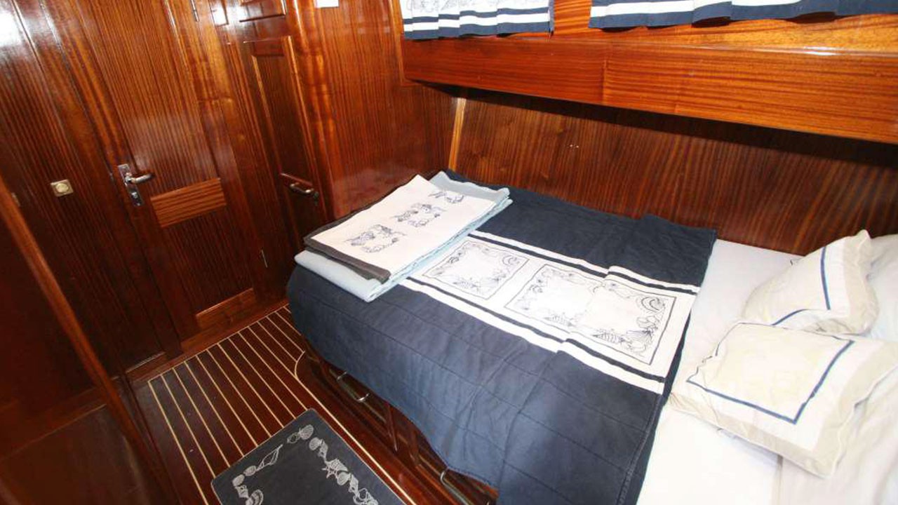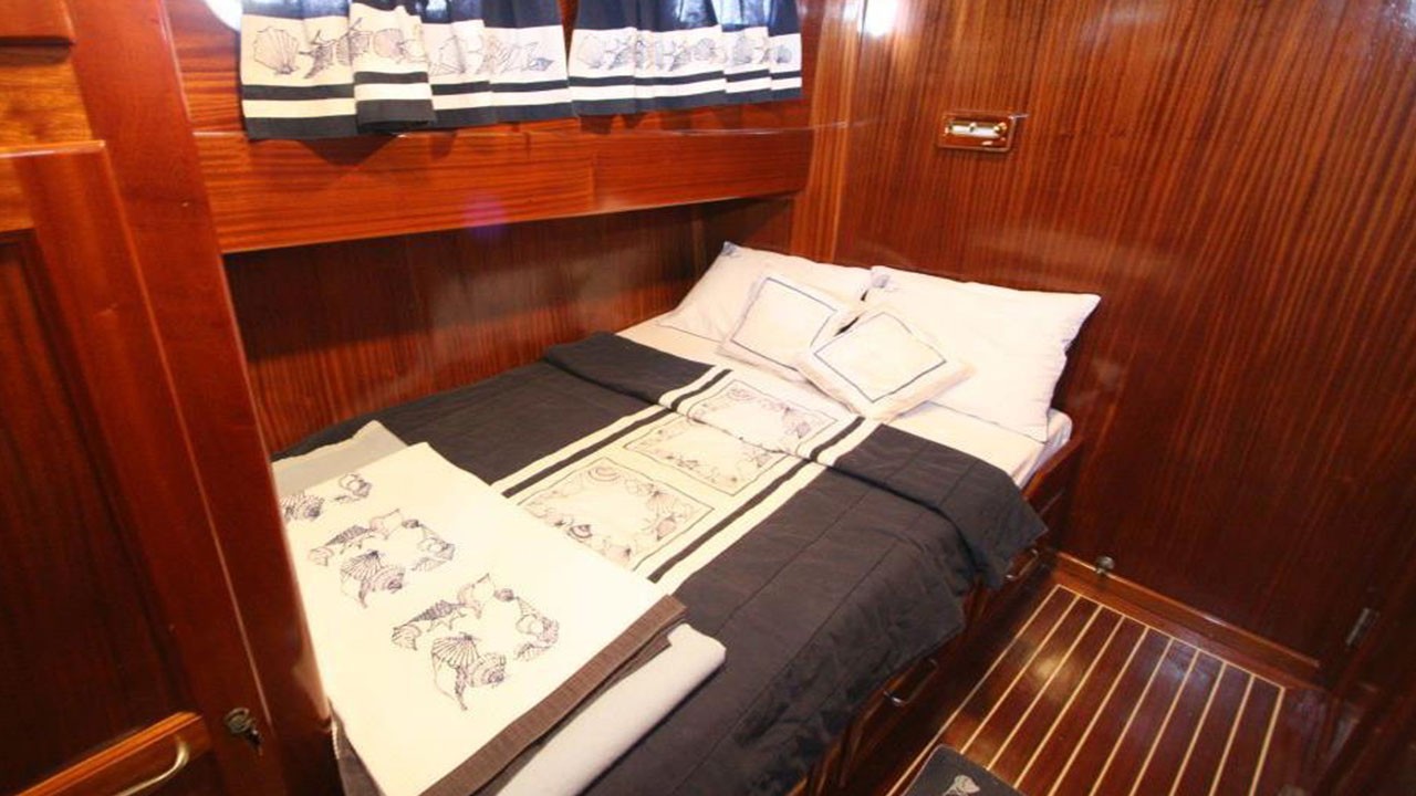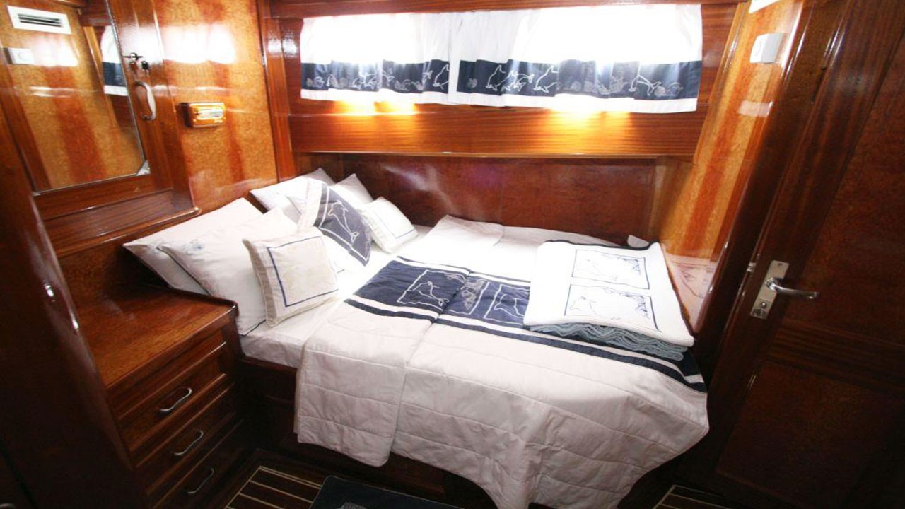 | Le Gulet Miramare est une élégante goélette traditionnelle en bois de 20 mètres, construite en 2007 et entièrement rénovée en 2022, alliant raffinement classique et confort moderne. Ce navire est doté de quatre cabines doubles, chacune avec salle de bain privative, et peut accueillir jusqu’à huit passagers. Il constitue un excellent choix pour les familles ou groupes d’amis souhaitant affréter un yacht privé en Turquie. Les passagers bénéficient d’un service personnalisé de haut niveau, assuré par un équipage dévoué de trois personnes. Celui-ci se charge de la préparation des repas, du nettoyage quotidien, des recommandations locales et de l’assistance générale tout au long de la croisière. Le Gulet Miramare est équipé d’un ensemble complet d’aménagements modernes destinés à assurer confort et divertissement à bord. On y trouve notamment la climatisation, un système multimédia comprenant télévision, lecteur DVD et système audio, ainsi qu’une connexion Wi-Fi, permettant aux hôtes de se détendre tout en restant connectés pendant leur séjour. Sur le pont, le Miramare offre un coin salon et repas convivial à l’arrière, des matelas de bronzage pour profiter du soleil, et un accès à divers équipements nautiques : annexe, canoë, matériel de plongée avec tuba et matériel de pêche, idéals pour explorer les eaux turquoise de la Méditerranée. Le navire est propulsé par un moteur de 265 CV, soutenu par un générateur de 12 kVA et un système électrique complet (24V, 220V). Sa vitesse de croisière de 8 nœuds garantit une navigation fluide et sûre. Au départ de Göcek, Fethiye, Marmaris ou Bodrum, le Gulet Miramare invite ses hôtes à découvrir les baies, criques et îles pittoresques de la côte sud-ouest de la Turquie, pour une Croisière Bleue inoubliable alliant sérénité, confort et découverte. |