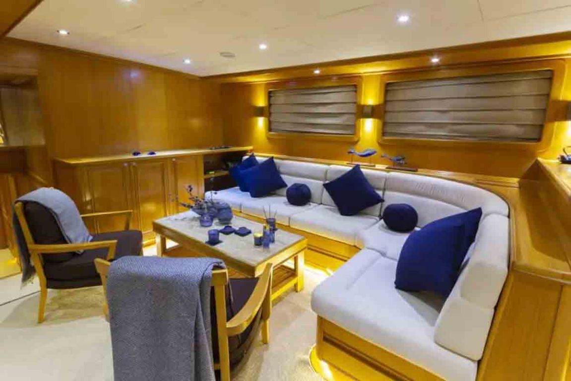 | Le Gulet Babylon est une goélette de luxe de 36 mètres, lancée en 2013 et rénovée en 2022, offrant un confort haut de gamme et une expérience de croisière prestigieuse. Elle dispose de 5 cabines — 1 cabine VIP, 1 cabine Master et 3 cabines doubles — pouvant accueillir jusqu’à 10 invités. Sa largeur exceptionnelle de 8,30 mètres garantit des intérieurs spacieux et des espaces extérieurs impressionnants pour la détente et les loisirs. Le pont propose de larges zones de bronzage, des coins salon ombragés, ainsi qu’un espace repas en plein air, idéal pour savourer des moments conviviaux face à la mer. À l’intérieur, le salon élégant comprend une table à manger, des sièges confortables et une cuisine entièrement équipée, créant une atmosphère à la fois raffinée et accueillante. Le Babylon offre une vaste sélection d’activités nautiques, incluant des tenders Yamaha de 100 CV, des stand-up paddles, des skis nautiques, des wakeboards, des ringos, des canoës, ainsi que du matériel de plongée et des équipements de pêche, garantissant plaisir et aventure pour tous. Propulsée par deux moteurs Man de 440 CV, et soutenue par deux générateurs (45 + 33 kVA), la goélette navigue en douceur à une vitesse de croisière de 12 nœuds. La climatisation, disponible jusqu’à 18 heures par jour, ainsi que les systèmes électriques 12V/24V/220V, assurent un confort optimal tout au long du séjour. Le Gulet Babylon est le choix idéal pour les groupes à la recherche d’une croisière bleue de luxe, alliant prestige, confort exceptionnel et large gamme d’activités nautiques, pour une expérience maritime inoubliable sur les eaux turquoise de la Riviera turque. |