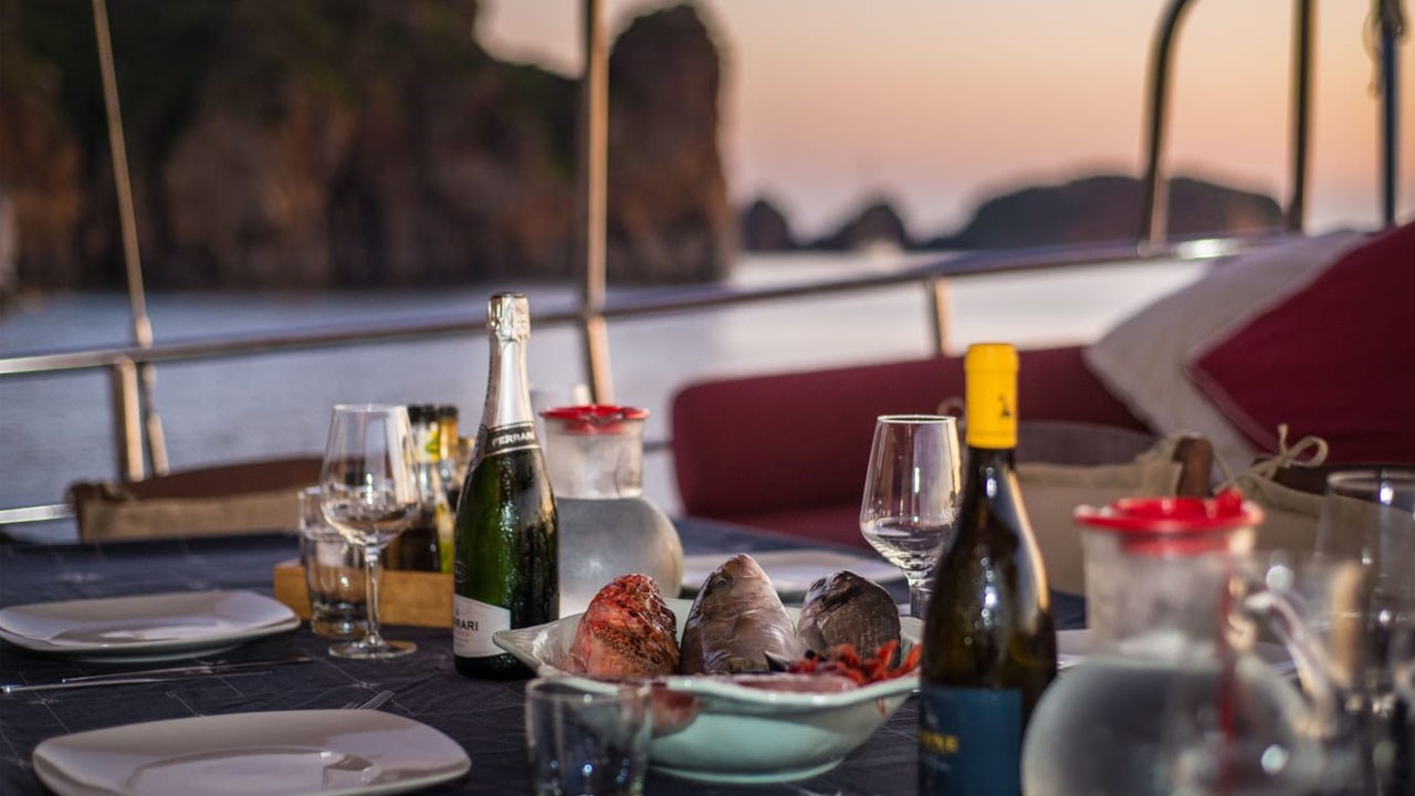 • Catering et boissons pour yacht Vous pouvez choisir des options de demi-pension ou de pension complète.