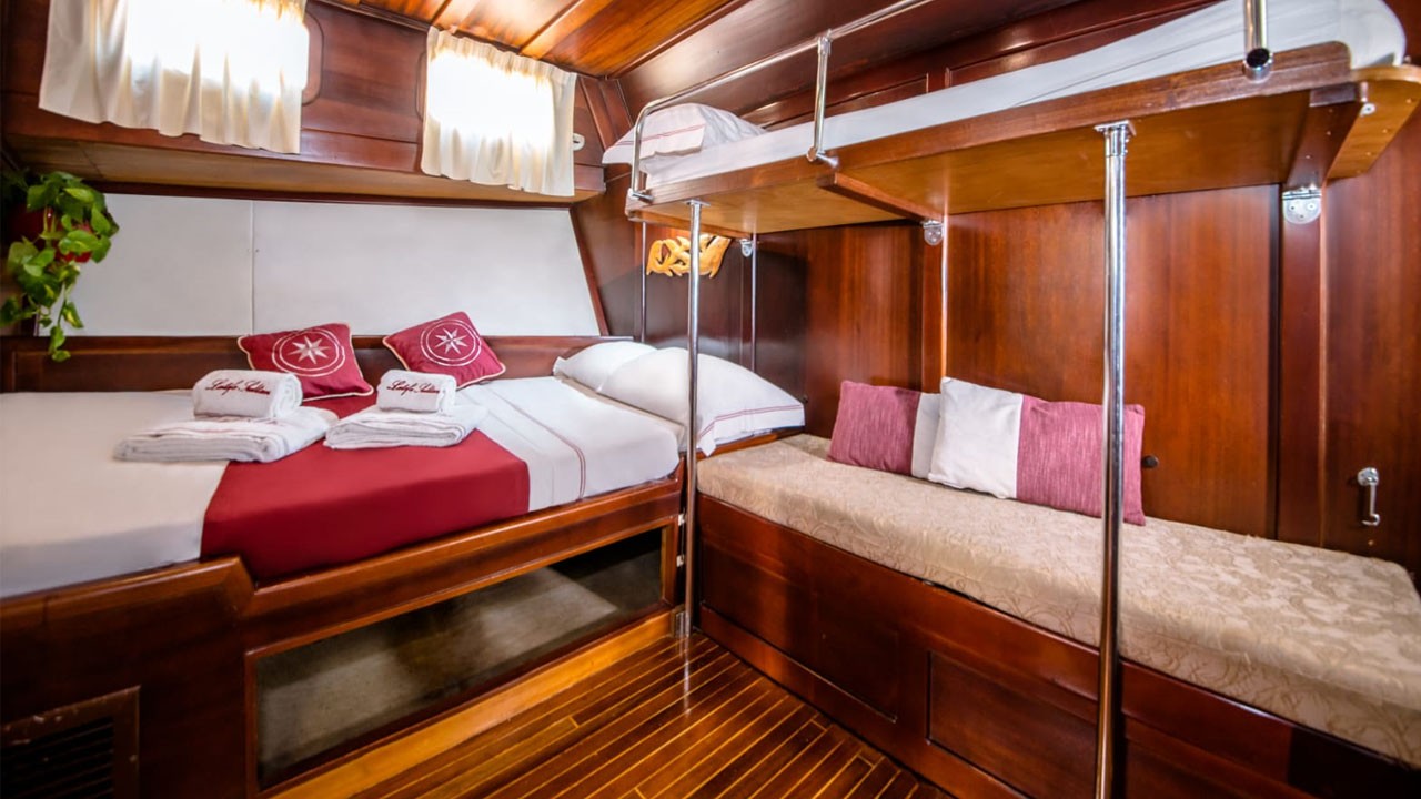 Up to 11 Guest Capacity; 1 Master, 4 Double Cabins, shower box and toilets in all the cabins, Seperate crew cabins.
