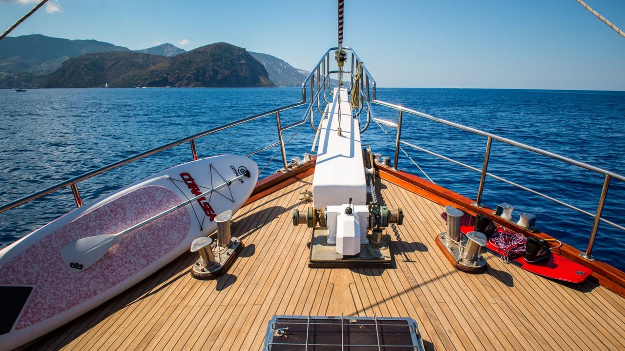 Moteur hors-bord 40 CV, Stand Up Paddle Board, Ski nautique, Wakeboard, Équipements de plongée avec tuba et de pêche, Cuisine équipée, Salle à manger intérieure, Équipements de sécurité, Équipements de navigation, Équipements de voile, Machines à café, Pont avec coin repas, Lecteur TV/DVD/CD, GPS, Radio VHF, Internet Wi-Fi