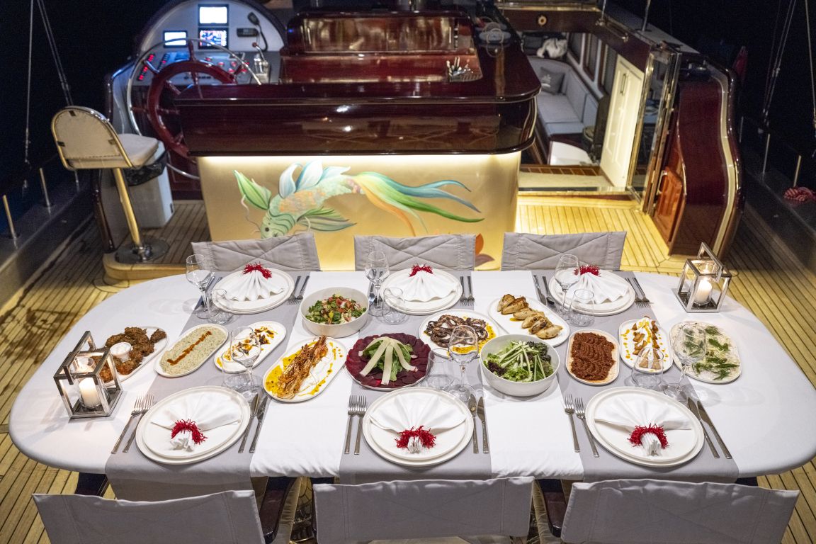 - Provisions et boissons à bord du yacht.