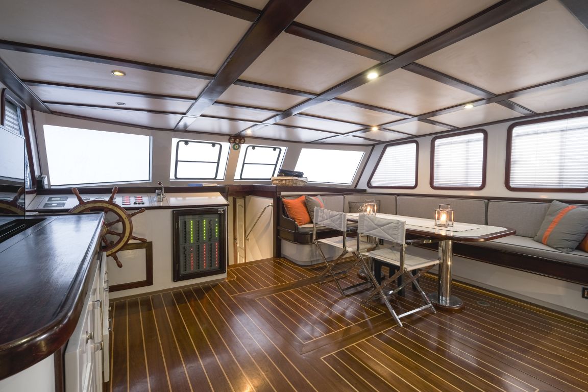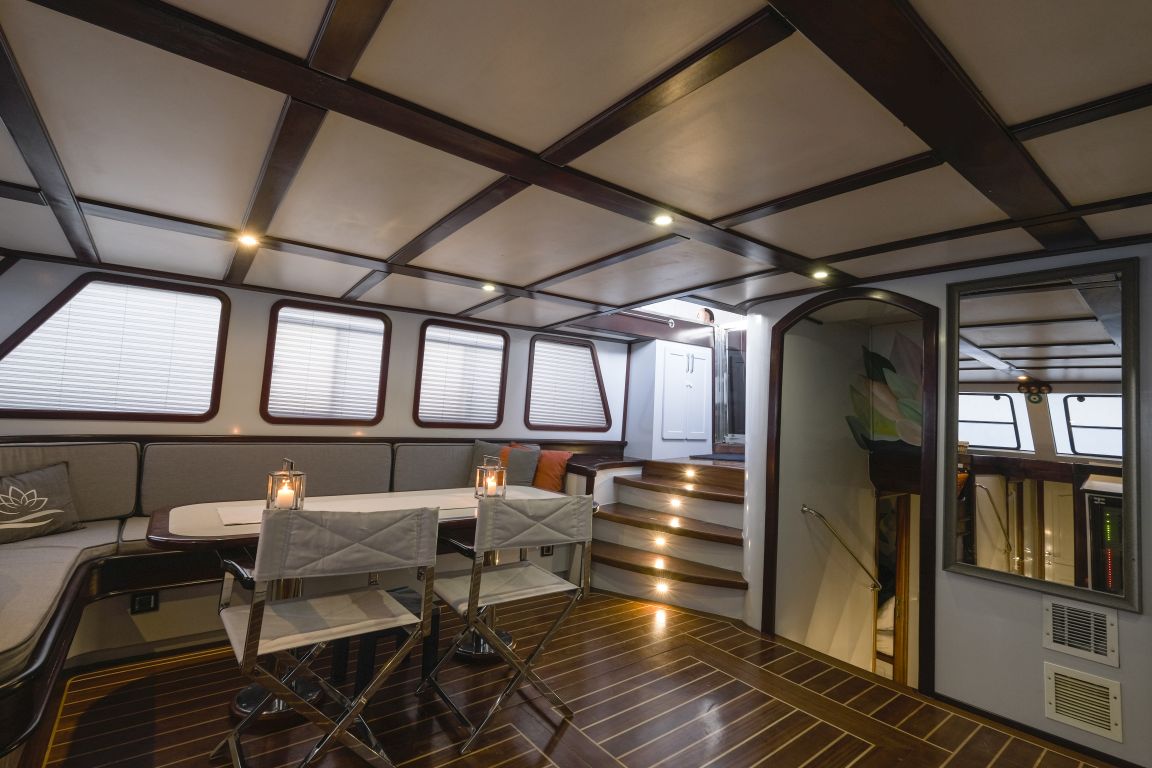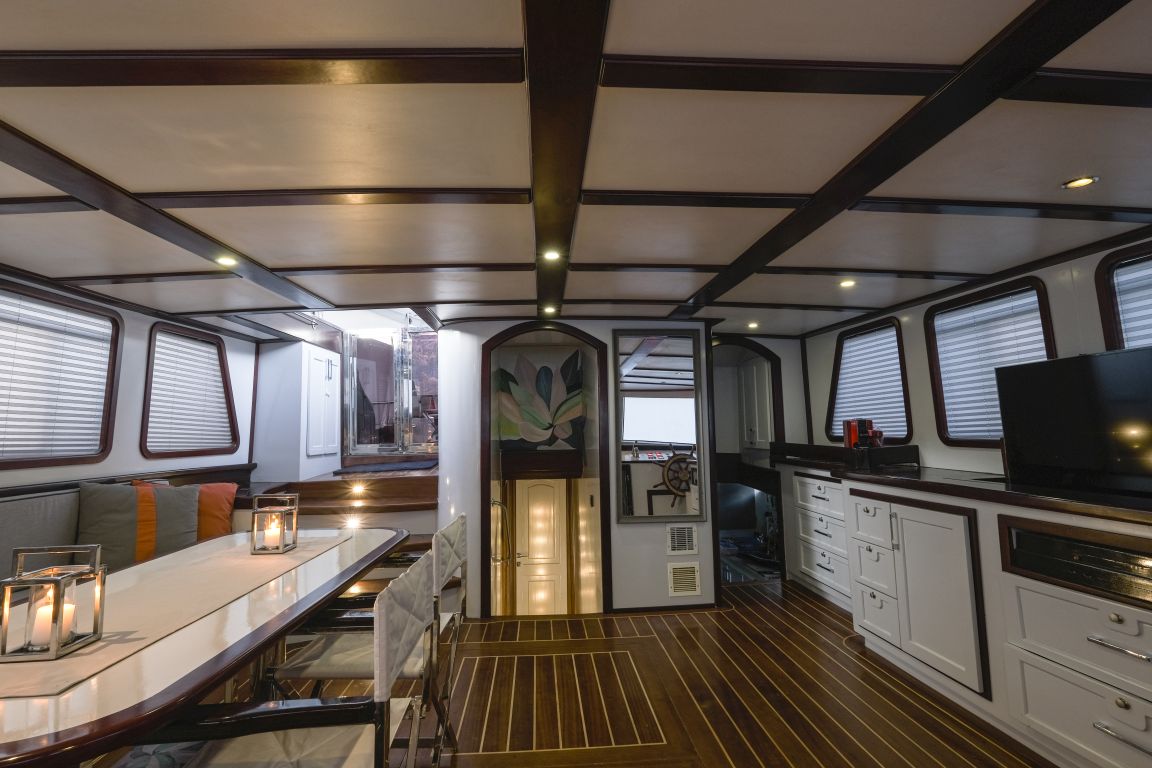 | Capacité d'accueil jusqu'à 11 personnes; 2 cabines Master, 3 cabines doubles. Toutes les cabines sont équipées de la climatisation, d'une douche et de toilettes. Cabines séparées pour le capitaine et l'équipage. Espace de vie séparé pour le capitaine et l'équipage. |