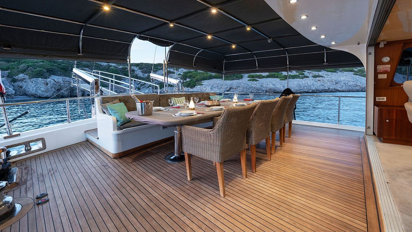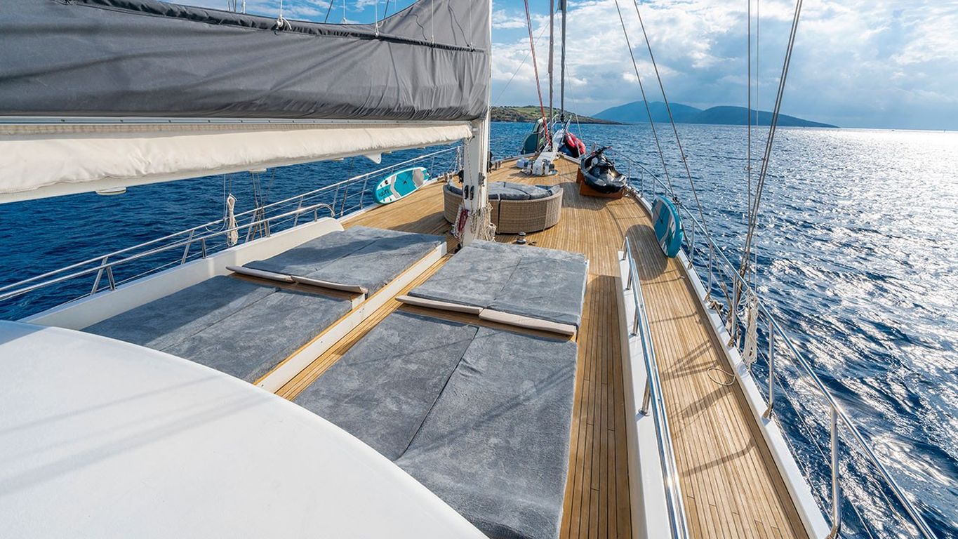 | Le Gulet Lucky You est une somptueuse goélette de luxe de 37 mètres, lancée en 2012, spécialement conçue pour les invités recherchant élégance, espace et confort moderne. Elle dispose de 5 cabines — 2 cabines VIP, 1 cabine Master et 2 cabines doubles — chacune équipée de salles de bain privatives, pouvant accueillir jusqu’à 10 invités dans le plus grand confort. Sa largeur généreuse de 7,40 mètres garantit des ponts spacieux et des intérieurs raffinés. Le pont extérieur se distingue par de larges zones de bronzage, des salons ombragés et une table à manger en plein air, idéale pour savourer les repas face à la mer. À l’intérieur, le salon élégant offre un espace repas, un coin détente et une cuisine moderne entièrement équipée, créant une ambiance à la fois luxueuse et accueillante. Pour les amateurs d’activités nautiques, le Lucky You propose une vaste gamme de sports aquatiques : un tender de 150 CV, des jet-skis, des stand-up paddles, des ringos, des canoës, ainsi que du matériel de plongée et des équipements de pêche. De quoi satisfaire à la fois les amateurs de détente et les passionnés d’aventure en mer. Propulsée par deux moteurs Man de 440 CV, soutenue par deux générateurs de 27 kVA, la goélette navigue à une vitesse de croisière de 10 nœuds. La climatisation, disponible 24h/24, ainsi que les systèmes électriques 12V/24V/220V, assurent un confort optimal tout au long du séjour. Le Gulet Lucky You est le choix idéal pour les familles et groupes souhaitant vivre une expérience de croisière bleue haut de gamme, alliant prestige, confort et divertissement, avec une vaste sélection d’équipements nautiques et des services de luxe pour des vacances inoubliables sur la Riviera turque. |