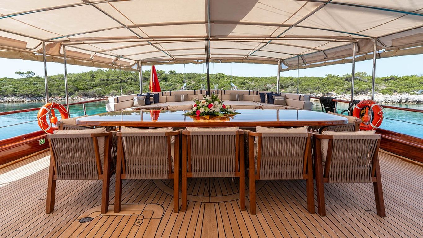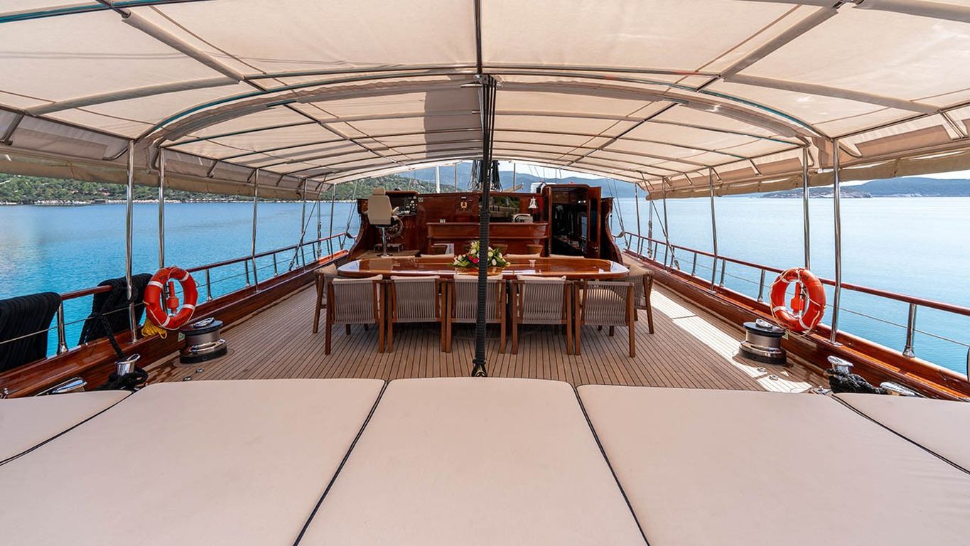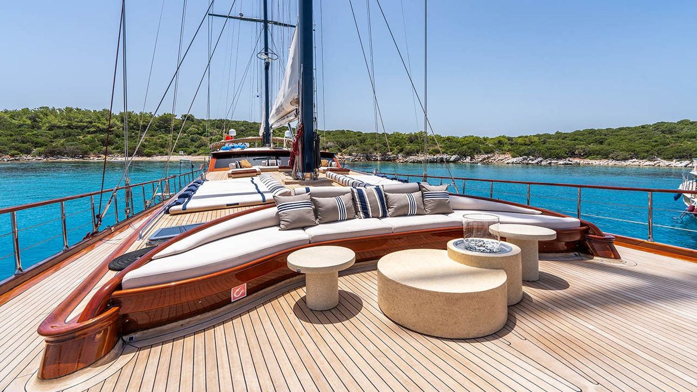 | Le Gulet Performance Fee est une goélette de luxe de 38 mètres, lancée à l’origine en 2011 et entièrement rénovée en 2024 pour la nouvelle saison, offrant un mélange parfait de prestige, confort et modernité. Dotée de 5 cabines — 2 cabines Master et 3 cabines doubles — elle peut accueillir jusqu’à 10 invités. Sa largeur impressionnante de 8,77 mètres garantit des espaces intérieurs généreux et de vastes zones extérieures dédiées à la détente. Le pont a été soigneusement conçu pour le bien-être des invités, avec des matelas de bronzage, des espaces ombragés confortables et une salle à manger en plein air pour profiter des repas face à la mer. À l’intérieur, le salon élégant présente une décoration contemporaine, une salle à manger spacieuse et un coin lounge convivial, créant une atmosphère raffinée et apaisante. Pour les amateurs de sports nautiques, le Performance Fee propose une vaste sélection d’équipements : un tender de 150 CV, des stand-up paddles, des skis nautiques, des wakeboards, des ringos, des bananes, des canoës, ainsi que du matériel de plongée et des équipements de pêche — garantissant des moments d’aventure et de plaisir sur l’eau. Propulsée par deux moteurs Volvo de 550 CV et soutenue par deux générateurs de 40 kVA, la goélette assure une navigation fluide à 12 nœuds. La climatisation disponible 24h/24, combinée à un système électrique complet (12V/24V/220V), garantit un confort optimal tout au long de la croisière. Le Gulet Performance Fee est le choix idéal pour les familles et groupes souhaitant vivre une expérience de croisière bleue à la fois luxueuse, confortable et dynamique, alliant relaxation, élégance et activités nautiques sur les eaux cristallines de la Méditerranée. |