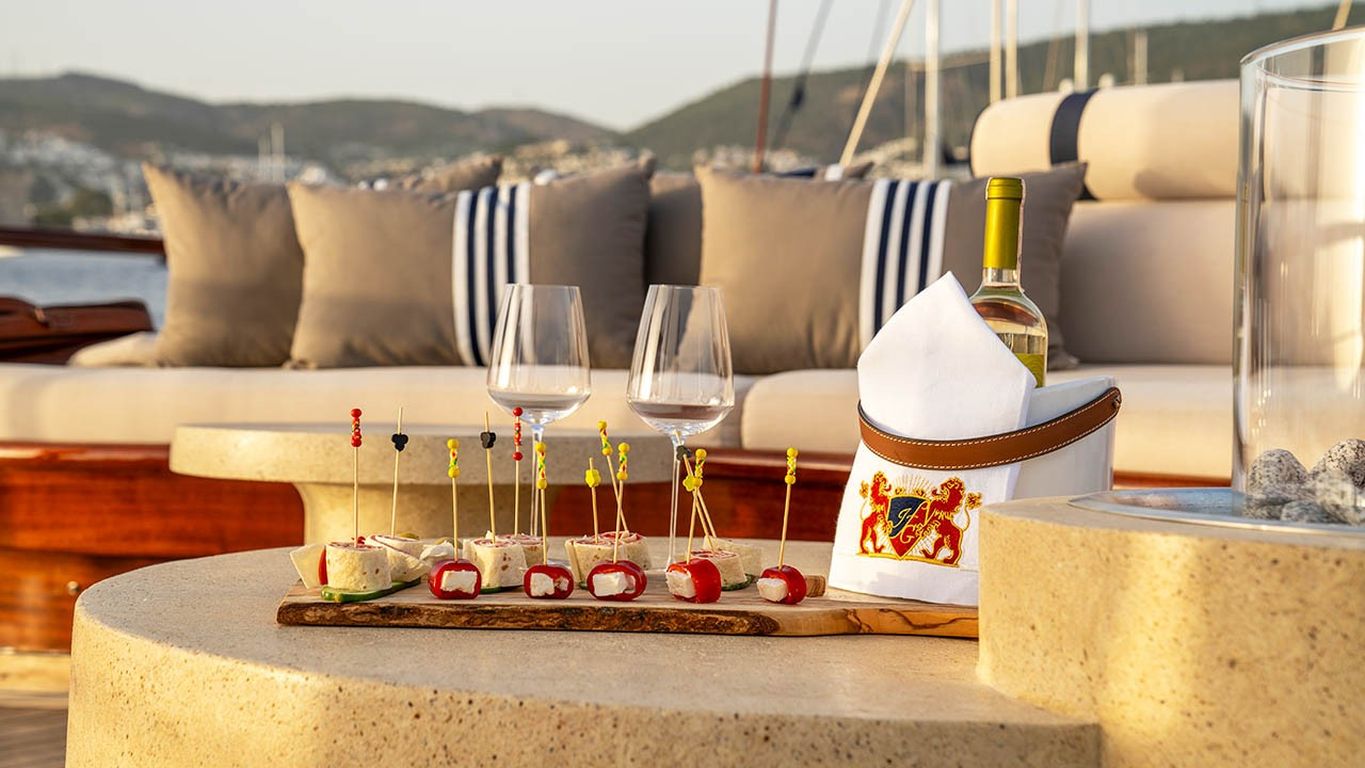 - Catering et boissons pour yacht Vous pouvez choisir des options de demi-pension ou de pension complète.