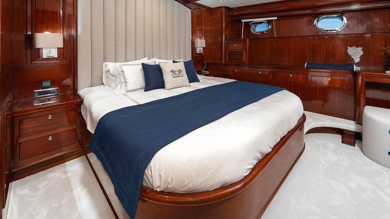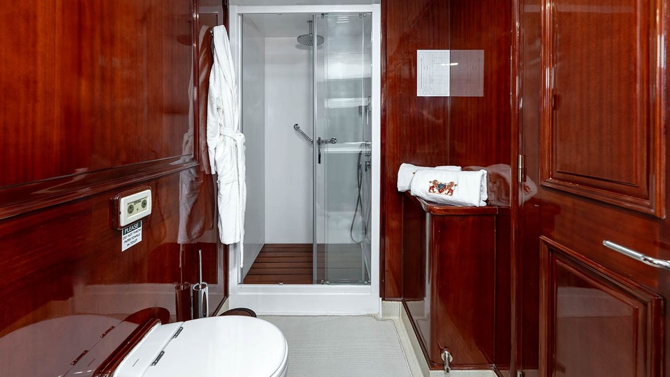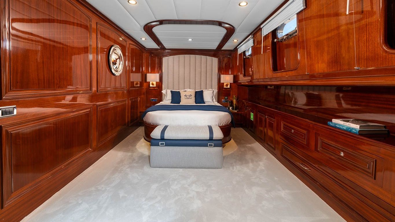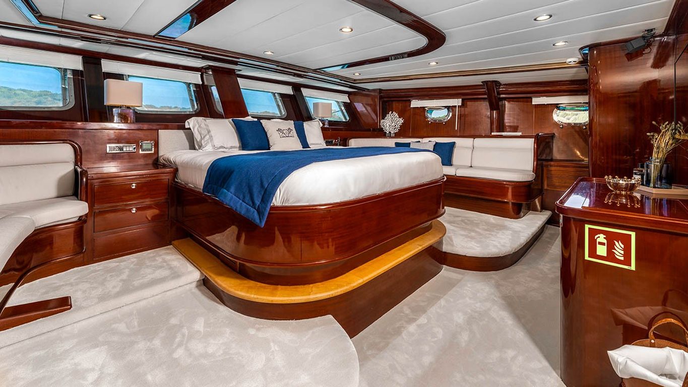 | Jusqu'à 12 personnes ; 2 cabines principales, 3 cabines doubles, cabine de douche et toilettes dans toutes les cabines, cabines d'équipage séparées. |