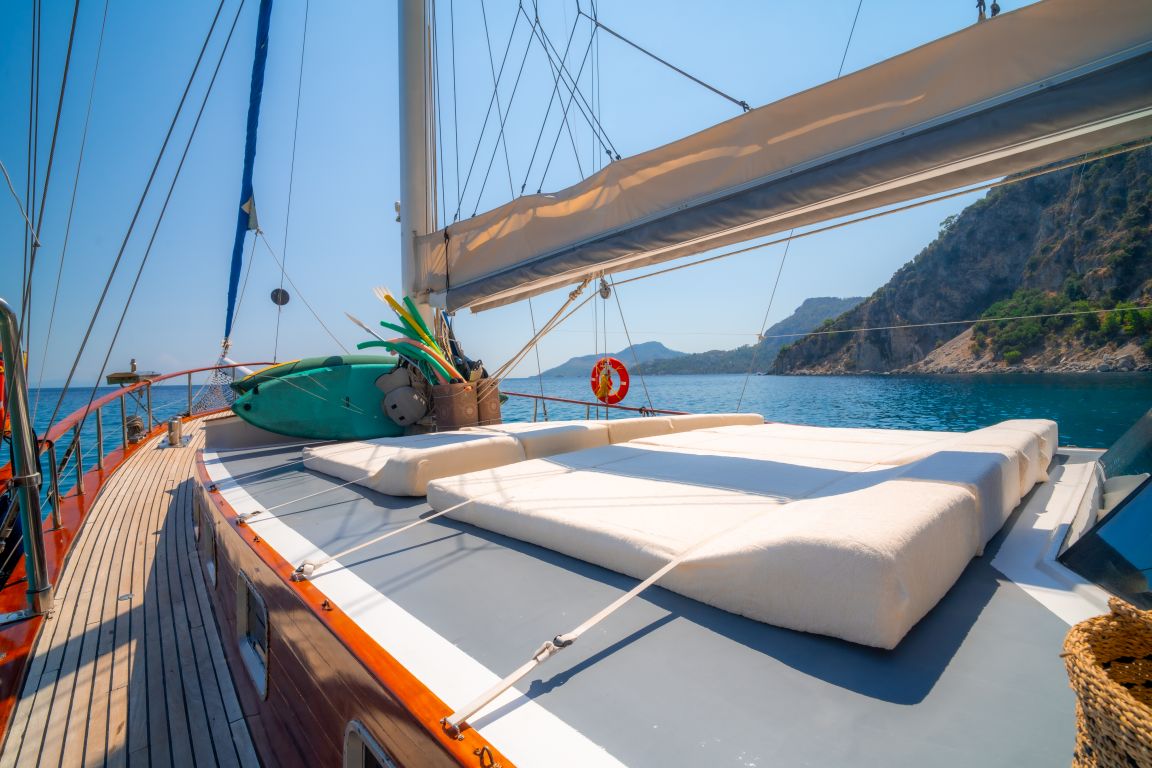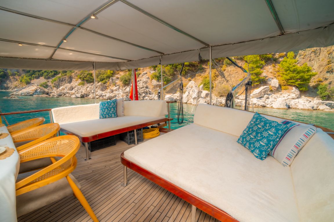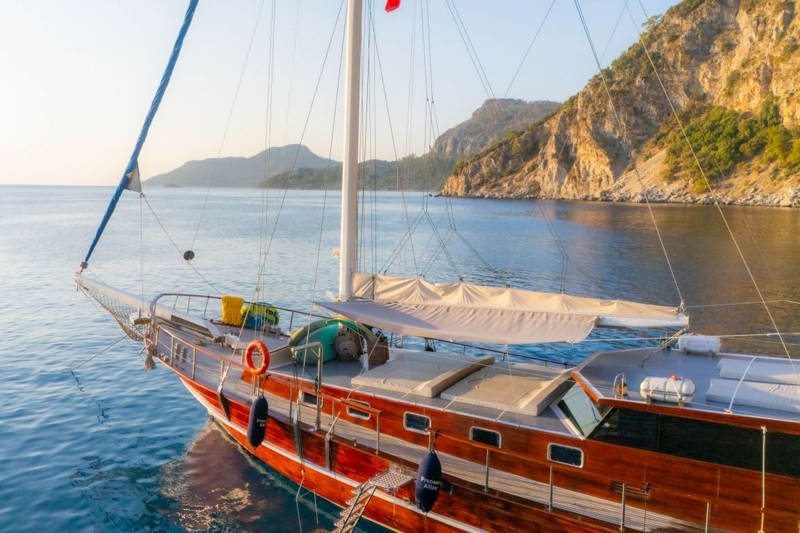 | Le gulet Princess Alize est un voilier en bois élégant de 29 mètres offrant confort, style et une atmosphère chaleureuse aux familles et aux groupes souhaitant vivre une mémorable croisière bleue en Turquie. Avec 5 cabines spacieuses (2 Master, 2 Double et 1 Twin) pour accueillir jusqu’à 10 personnes, elle constitue un excellent choix pour des croisières privées le long des côtes égéennes et méditerranéennes. Chaque cabine dispose de sa propre salle de bain et de la climatisation, garantissant un séjour agréable tout au long du voyage. Son vaste pont extérieur propose de grands espaces de vie en plein air, comprenant une zone à manger ombragée, des sièges confortables et de larges espaces pour bronzer. La poupe est idéale pour de longues soirées conviviales, tandis que la proue offre un coin paisible pour profiter du soleil et des vues sur la mer. Princess Alize associe confort et ambiance chaleureuse. Son équipage expérimenté assure un service attentif – des repas délicieux au ménage quotidien et à la planification de l’itinéraire – pour une expérience de croisière fluide et agréable. Pour les amateurs d’activités nautiques, le gulet propose des paddleboards, un canoë, du matériel de snorkeling et divers jeux aquatiques, créant des moments amusants pour les adultes comme pour les familles avec enfants. Au départ de Bodrum, Princess Alize navigue vers les plus beaux itinéraires, notamment Gökova, Hisarönü, Göcek, Marmaris, Fethiye et, en option, les îles grecques telles que Rhodes et Symi. Des baies cristallines, des criques paisibles et des couchers de soleil inoubliables rendent ce voyage absolument unique. Si vous recherchez une location privée de gulet de 5 cabines alliant confort et charme, Princess Alize est un excellent choix offrant qualité et atmosphère conviviale. |