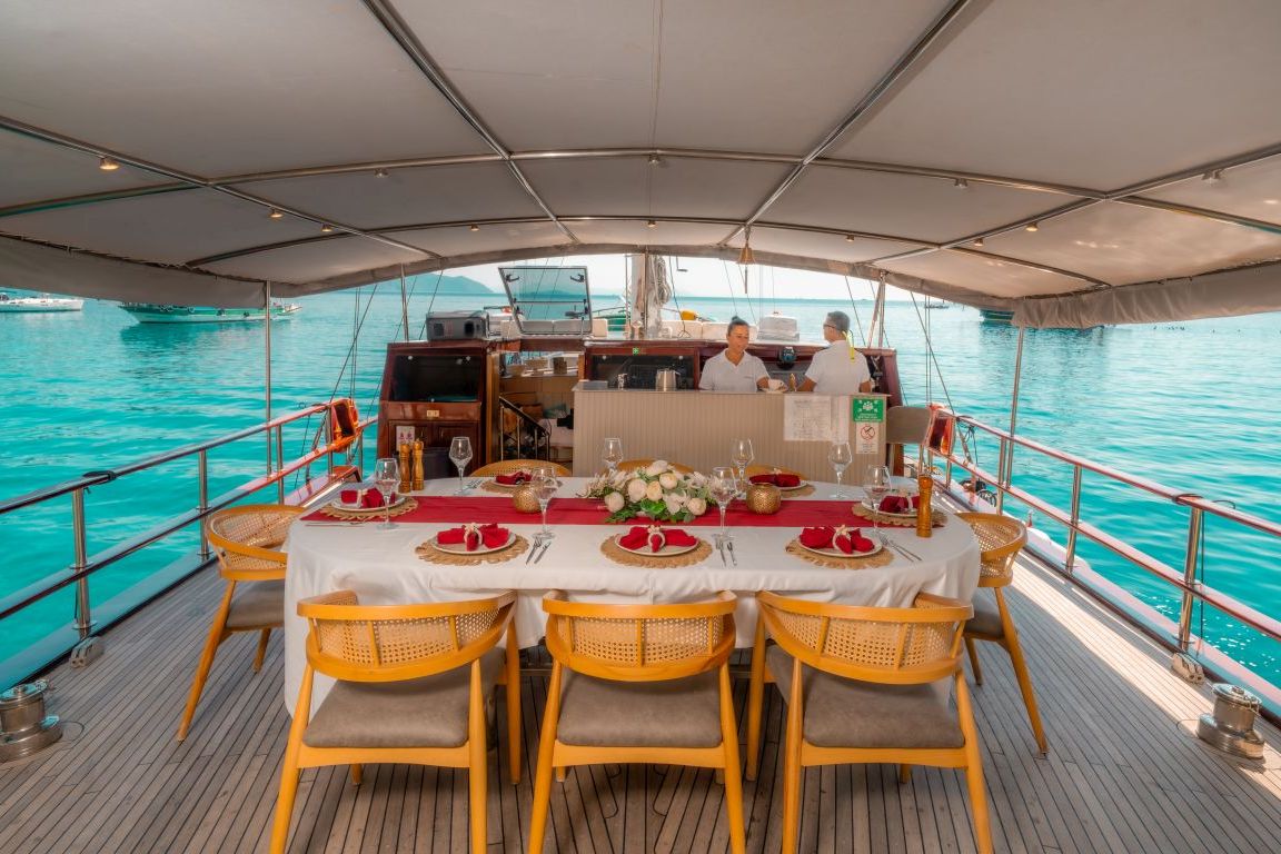 - Catering et boissons pour yacht Vous pouvez choisir des options de demi-pension ou de pension complète.