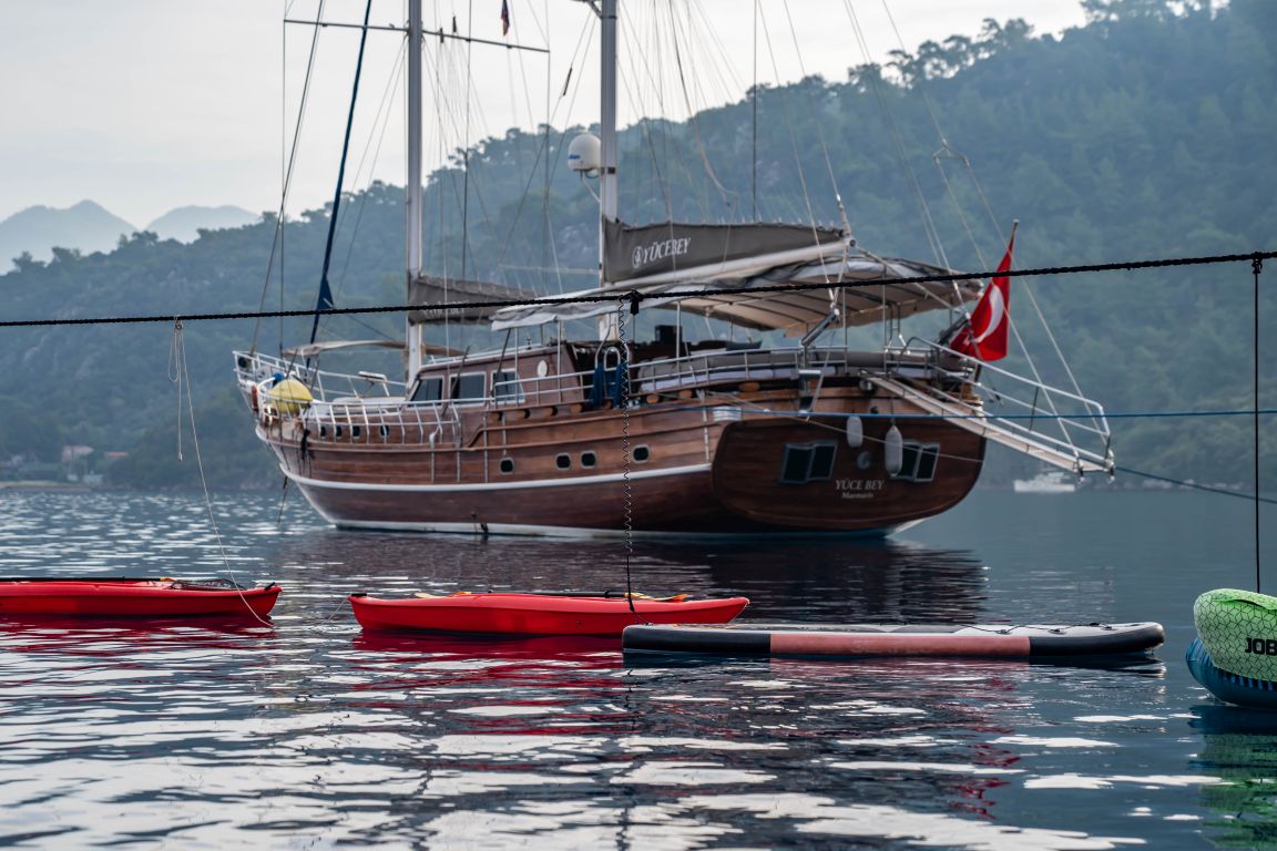 Notre Goélette Yucebey 1 de 23,95 m a été construit en 2008. Il a pris sa forme définitive avec la rénovation et la rénovation qu'il a subi en 2023. Notre bateau dispose de 5 cabines, dont 1 Master, 2 Doubles et 2 Twin, chacune plus stylée et confortable, avec sa propre douche, WC et climatisation. 4 Il y a des espaces de vie séparés, une cuisine entièrement équipée, des espaces repas intérieurs et extérieurs et des aires de repos pour l'équipage. Il y a suffisamment de coussins pour bronzer, de chaises et de couverts pour tous les invités. Goélette Yucebey 1, grâce à son équipement complet de téléphonie sans fil, GSM et de navigation ; Bodrum, Gocek, Marmaris, Fethiye etc. Vous pouvez naviguer en toute sécurité dans nos destinations de croisière bleue. TV LCD, lecteur DVD et chaîne stéréo sont au service de nos précieux invités du voyage bleu dans le salon de notre Goélette. Des sports nautiques tels que le canoë, la plongée, la planche à voile sont proposés en option à nos clients s'ils le souhaitent. Le bateau Yucebey 1 offre également des divertissements et la possibilité de se détendre sur le bateau à nos passagers qui souhaitent profiter du Blue Voyage dans les baies intactes de Turquie. Notre Goélette est prête à accueillir nos précieux clients qui envisagent de louer une Goélette hebdomadaire dans les régions de Bodrum, Gocek, Fethiye, Marmaris et Gokova. |