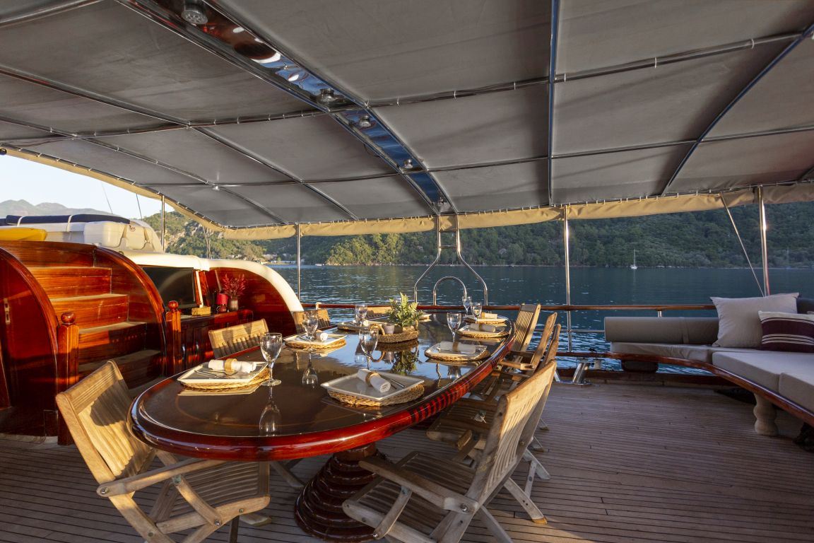 offrez-vous l'expérience luxueuse de notre yacht, doté d'un auvent avant pour plus de confort et de la commodité de machines à café spéciales. propulsé par 2 moteurs iveco de 280 ch et des générateurs de 35 kW, Goélette Yucebey 1 offre une expérience de navigation douce et puissante. équipé pour la navigation avec traceur de cartes, boussole, VHF, GPS et nawtext, bateau Zodiac de 70 CV, dessalinisateur et système d'éclairage sous-marin disponibles, navigation : Goélette Yucebey 1 assure un voyage sûr et agréable. avec une capacité de carburant de 3 000 litres et une capacité d'eau de 6 000 litres, vous pouvez embarquer pour de longues aventures. |