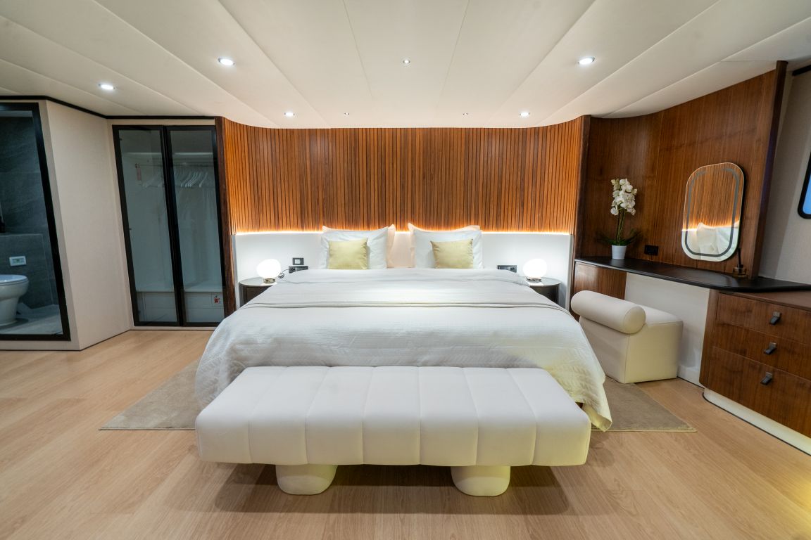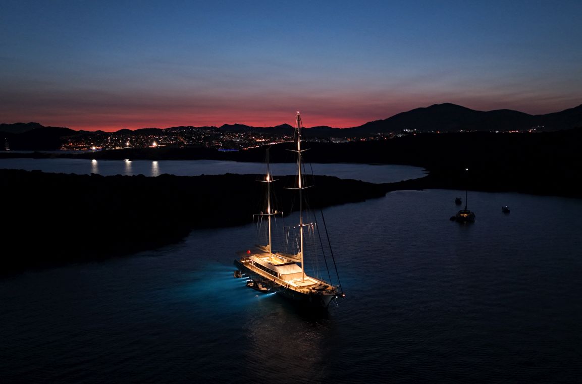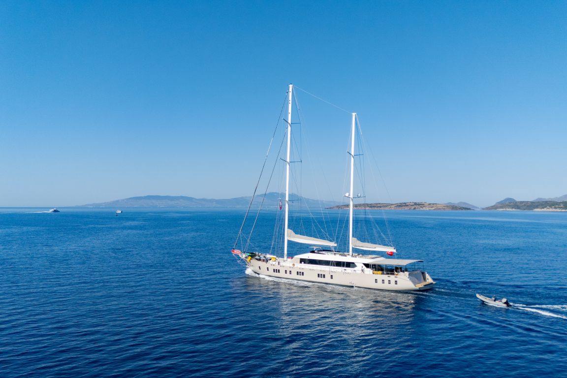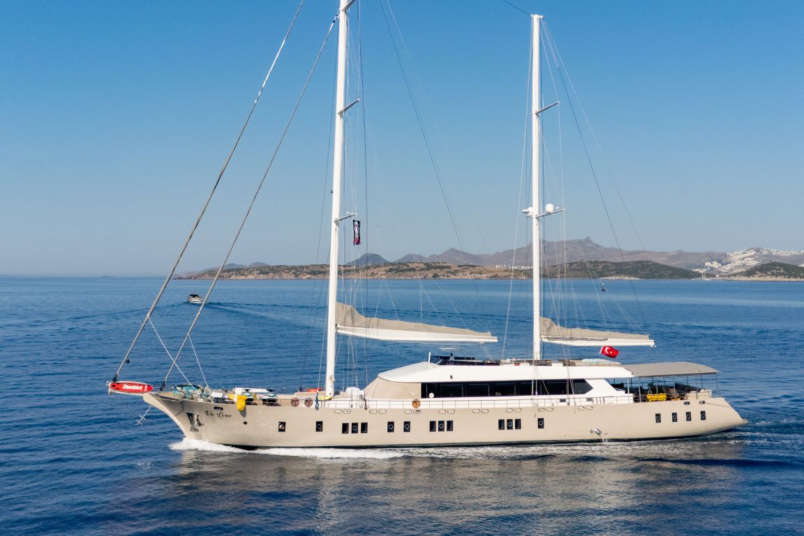 | Le Gulet De Love est un voilier de luxe exceptionnel de 50 mètres, lancé en 2024, incarnant l’élégance contemporaine et le raffinement ultime des croisières VIP. Avec 7 cabines — comprenant 1 suite Master et 6 cabines doubles —, elle peut accueillir jusqu’à 14 invités dans un confort absolu. Chaque cabine dispose de sa salle de bain privative, d’un design moderne et d’une climatisation intégrale disponible 24h/24. Sa largeur impressionnante de 10 mètres garantit des espaces de vie généreux, incluant de vastes ponts de bronzage, des zones de repas ombragées, et des salons élégants propices à la détente. Le salon intérieur, à la fois contemporain et raffiné, est équipé d’une table à manger, d’un système de divertissement moderne et d’un aménagement haut de gamme. Le De Love met à disposition une sélection premium d’activités nautiques, comprenant un canot de 90 CV, un tender haute puissance de 700 CV, un Big Mable, un jet-ski, des stand-up paddleboards, skis nautiques, wakeboards, canoë, ainsi que du matériel de plongée et de pêche. Propulsé par deux moteurs Volvo Penta de 750 CV et soutenu par trois générateurs (50 + 50 + 26 kVA), il assure une vitesse de croisière de 10 nœuds tout en offrant une navigation fluide et silencieuse. Le Gulet De Love incarne le summum du luxe maritime, combinant grandeur, performance et aventure pour une expérience de croisière bleue VIP inoubliable à travers les eaux turquoise de la Méditerranée. |