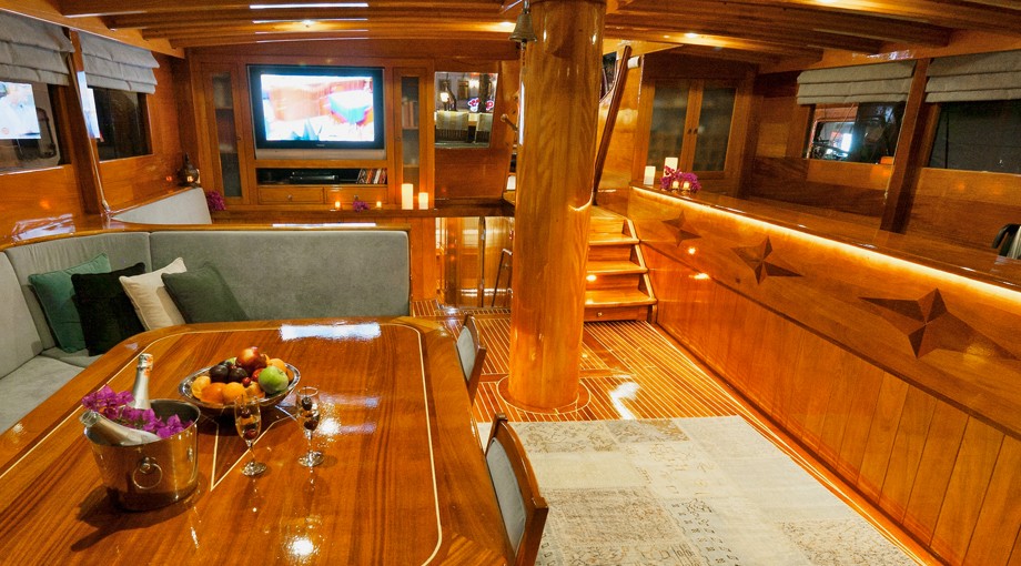 | Jusqu'à 17 personnes ; 2 cabines principales, 3 doubles, 1 triple, 2 cabines twin, climatisation, lecteur TV/DVD/CD, cabine de douche et toilettes de type maison dans toutes les cabines, cabines d'équipage séparées. |