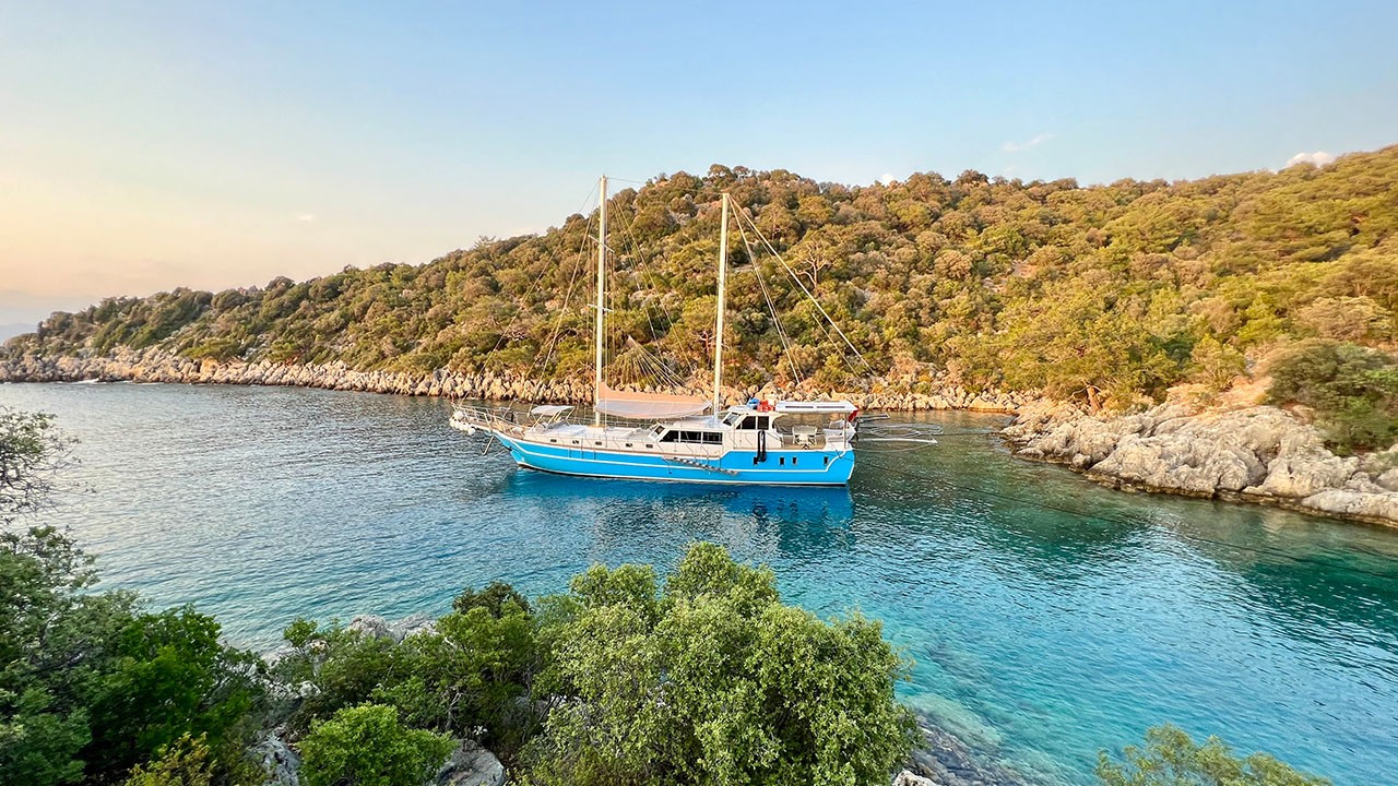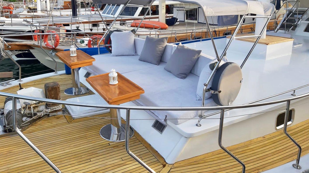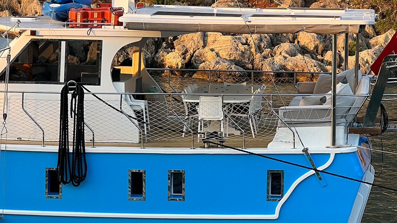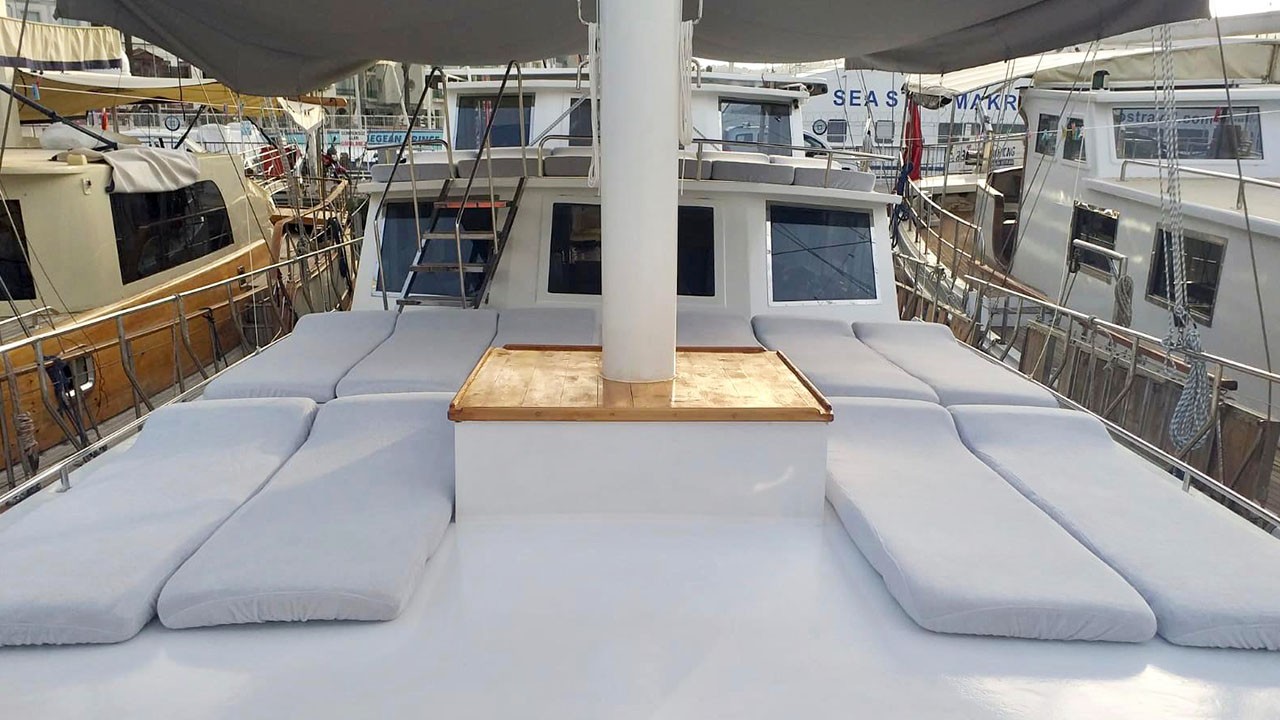| Le Gulet Simi est une goélette de 26 mètres, construite en 2015 et rénovée en 2022, offrant une combinaison harmonieuse de confort, d’espace et de convivialité. Elle dispose de 8 cabines doubles, pouvant accueillir jusqu’à 16 passagers, chacune équipée d’une salle de bain privative et de la climatisation, disponible 6 heures par jour pour garantir une atmosphère agréable à bord. Avec une largeur de 6,5 mètres, le Simi propose de spacieux ponts parfaitement agencés : espaces repas ombragés, zones lounge confortables et larges bains de soleil pour se détendre tout au long de la croisière. Le salon intérieur, accueillant et bien aménagé, comprend un coin repas et une cuisine entièrement équipée, créant une ambiance chaleureuse et détendue. Côté loisirs, le Gulet Simi met à disposition une sélection d’équipements nautiques : un tender de 30 CV, des paddleboards, des canoës, ainsi que du matériel de snorkeling et de pêche — parfaits pour profiter pleinement des eaux turquoise. Propulsée par un moteur MAN de 500 CV et soutenue par un générateur de 22,5 kVA, la goélette navigue à une vitesse de croisière de 9 nœuds, alliant puissance et stabilité. Le Gulet Simi est le choix idéal pour les groupes moyens souhaitant vivre une croisière bleue confortable, conviviale et abordable, le long des côtes pittoresques de la Turquie. |