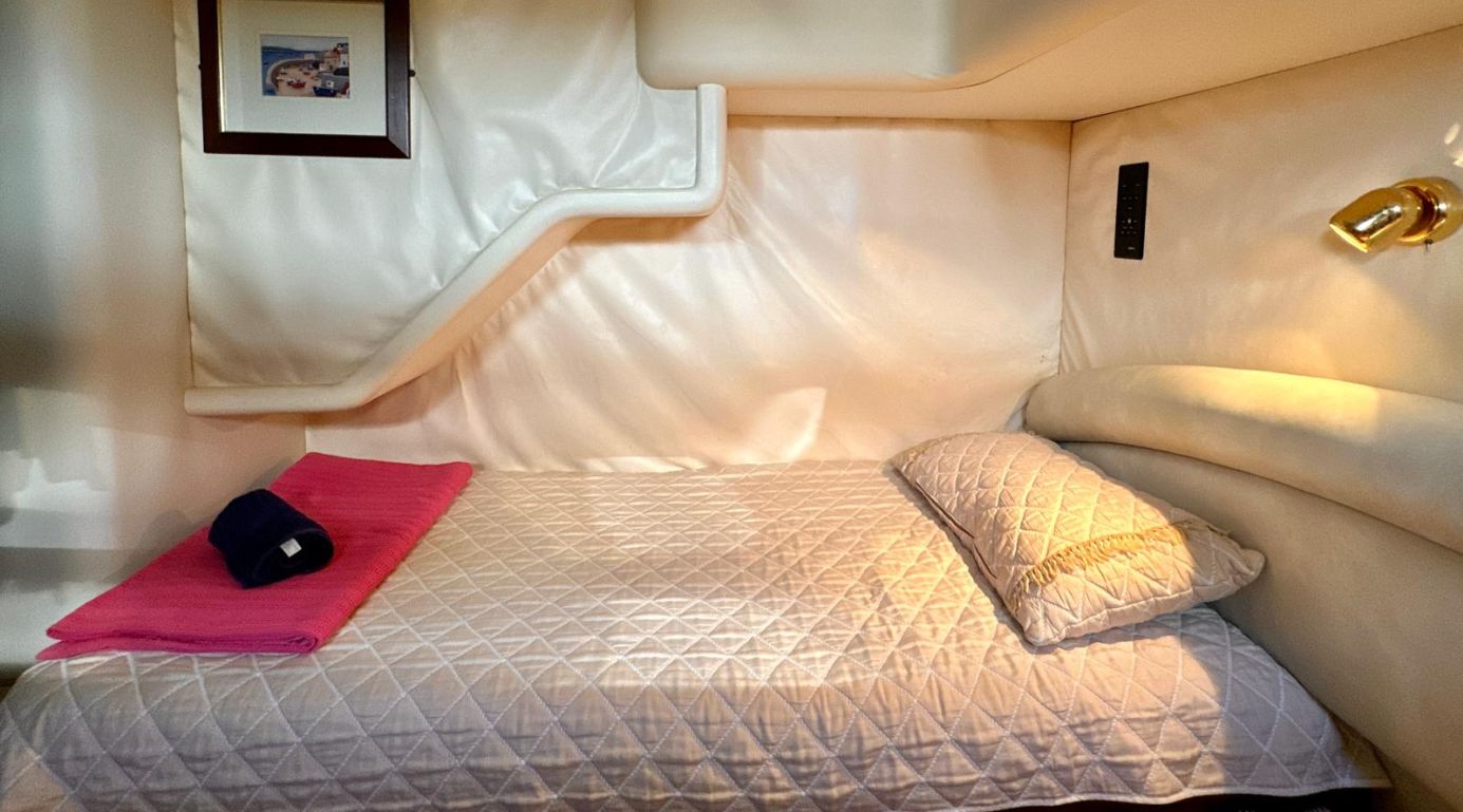 Jusqu'à 4 passagers ; 3 cabines. Toutes les cabines sont équipées d'une salle de bain, de toilettes et de la climatisation. Cabines séparées pour l'équipage. |