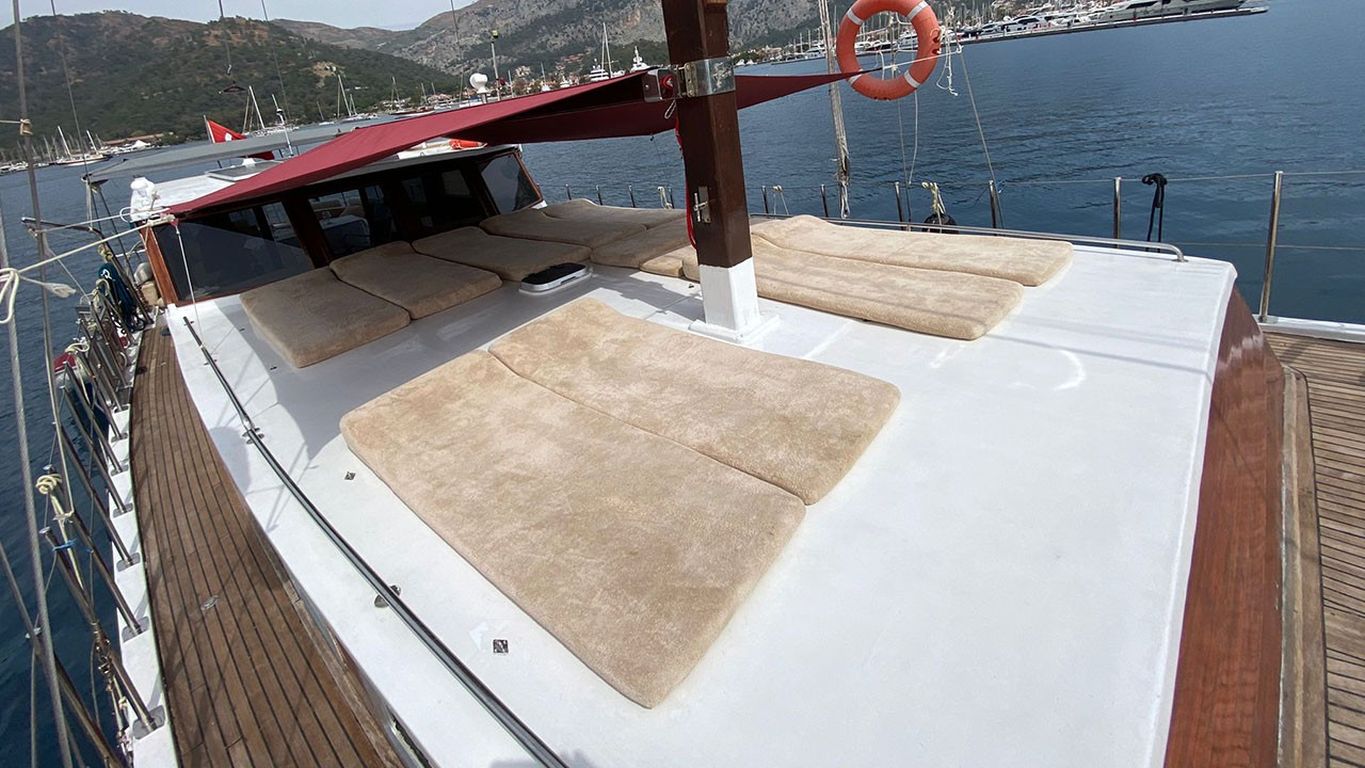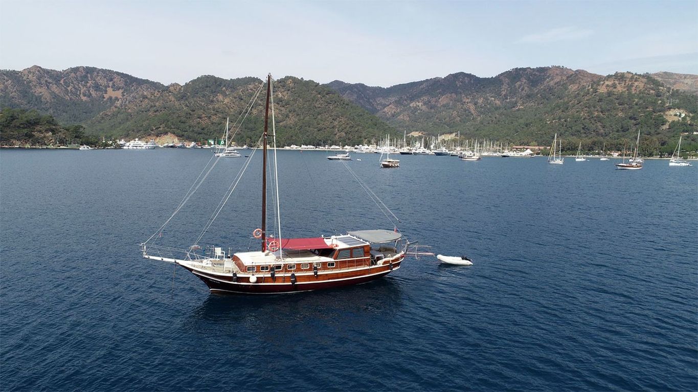 | Le Gulet Maedi est un yacht traditionnel en bois de 17 mètres, entièrement rénové en 2022, alliant charme classique et confort moderne. Le bateau dispose de trois cabines doubles, chacune équipée d’une salle de bain privative avec douche et WC, et peut accueillir jusqu’à six passagers accompagnés de deux membres d’équipage expérimentés. C’est un choix idéal pour les familles ou petits groupes souhaitant louer un gulet privé à trois cabines en Turquie. Sur le pont arrière, les invités peuvent profiter d’un vaste espace de détente avec coussins, d’une table à manger en plein air et de zones de bronzage confortables. À l’intérieur, le salon offre une atmosphère chaleureuse et conviviale, avec un coin repas supplémentaire, une cuisine entièrement équipée, ainsi qu’un téléviseur, lecteur DVD et système audio. Pour les amateurs d’activités nautiques, le Gulet Maedi met à disposition une annexe Yamaha de 9,9 CV, un canoë, du matériel de plongée avec tuba et des équipements de pêche. Des jouets nautiques supplémentaires tels qu’un jet ski, un seabob ou une planche de paddle peuvent être organisés sur demande. Naviguant entre Bodrum, Marmaris, Göcek et Fethiye, le Gulet Maedi offre une croisière bleue paisible dans les baies turquoise de la Turquie, alliant confort, intimité et esprit d’aventure. C’est une option parfaite pour ceux qui recherchent une expérience mêlant détente, découverte et authenticité. |