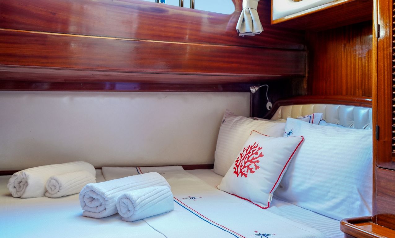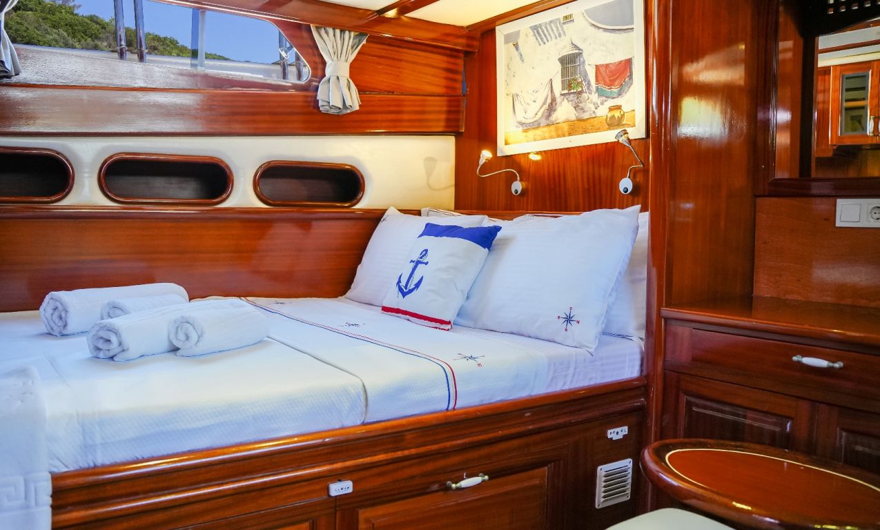 | Le Gulet Oalis est un yacht traditionnel en bois de 19 mètres, construit en 2011, offrant un mélange raffiné de design classique et de confort moderne. Doté d’une cabine Master et de deux cabines doubles, chacune équipée de sa propre salle de bain privative, il peut accueillir jusqu’à six passagers. C’est un choix idéal pour les familles ou les petits groupes à la recherche d’un gulet privé en Turquie. Le pont a été soigneusement conçu pour offrir relaxation et plaisir, avec un vaste espace de détente, une table à manger extérieure, et des zones de bronzage parfaites pour les repas en plein air. Sous le pont, vous trouverez un salon accueillant, doté d’un coin repas et d’une cuisine entièrement équipée, garantissant un confort intérieur optimal entre deux aventures en mer. Le Gulet Oalis ravira les amateurs d’activités nautiques avec une annexe motorisée de 25 CV, une planche de paddle, un canoë, du matériel de plongée avec tuba et des équipements de pêche, promettant des moments de divertissement inoubliables à bord. Propulsé par deux puissants moteurs Iveco de 280 CV, le bateau peut atteindre une vitesse maximale de 9 nœuds. Il est également équipé d’un générateur de 16 kVA et de systèmes électriques 12V, 24V et 220V, assurant tout le confort nécessaire à bord, y compris la climatisation disponible jusqu’à 5 heures par jour. Naviguant le long de la magnifique côte sud-ouest de la Turquie, le Gulet Oalis part généralement de Bodrum, Marmaris, Göcek ou Fethiye, emmenant ses passagers vers des baies turquoise cachées et des criques paisibles. Alliant élégance, confort et authenticité, il offre une expérience de croisière bleue inoubliable au cœur des plus beaux paysages maritimes de la Méditerranée. |