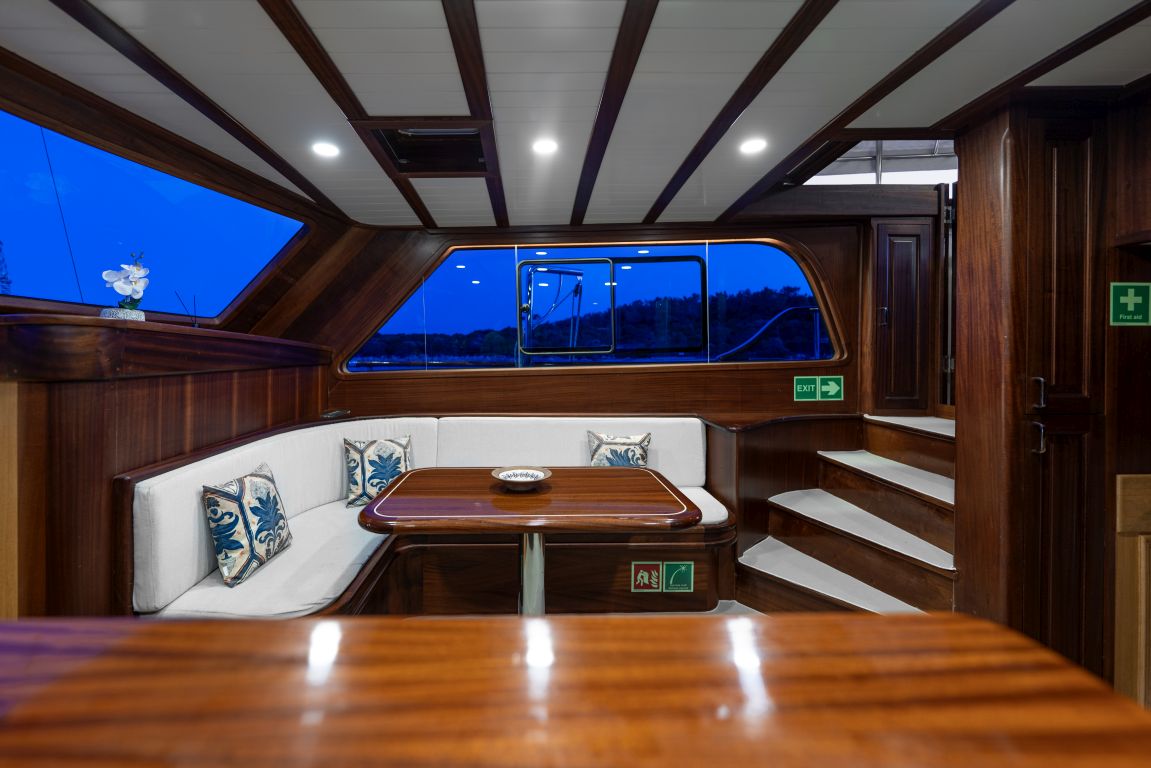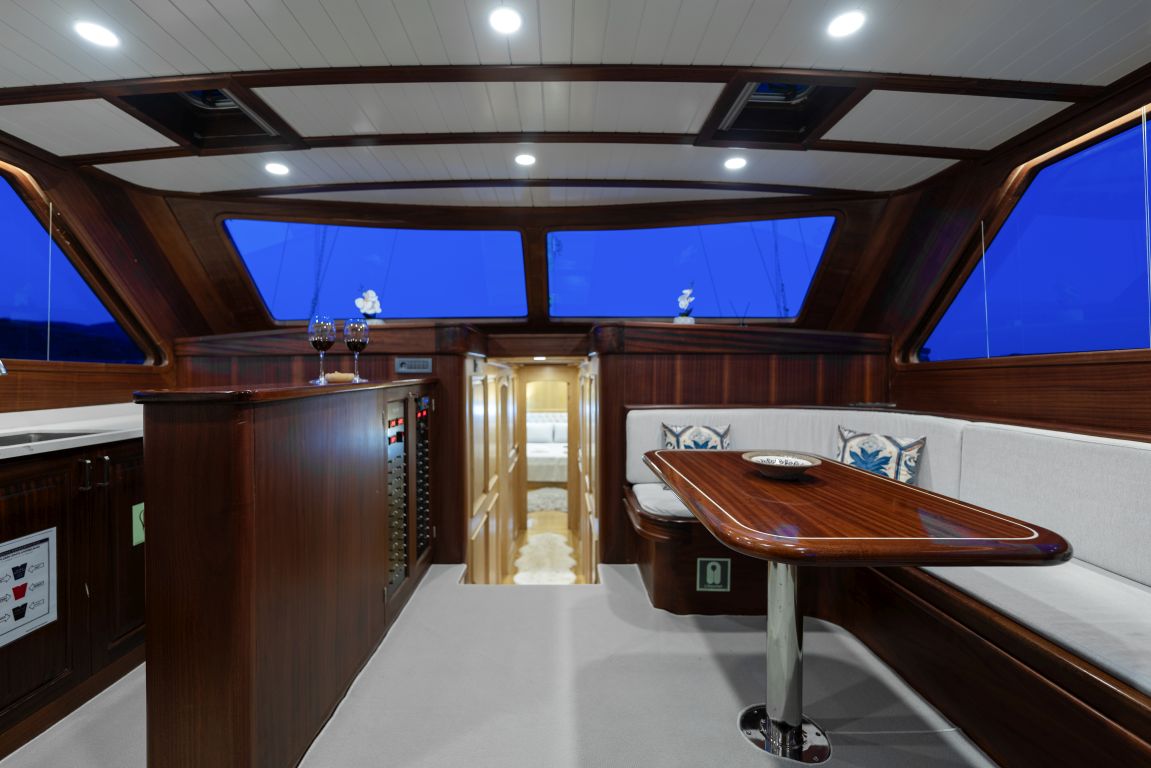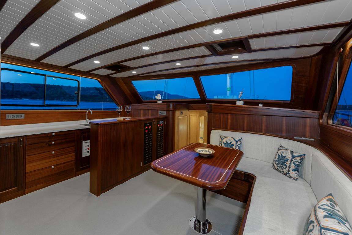 | Le Gulet Eagle Eyes est une magnifique goélette traditionnelle en bois de 20 mètres, construite en 2024, alliant savoir-faire artisanal moderne et luxe contemporain. Le navire comprend quatre cabines — deux Master, une Double et une Twin — toutes équipées de salles de bain privatives, pouvant accueillir jusqu’à huit passagers. Sa largeur de 5,80 mètres garantit un espace intérieur et extérieur généreux, assurant un confort optimal durant la croisière. Le pont offre de larges zones de détente, des espaces de repas ombragés et des terrasses de bronzage spacieuses, parfaites pour savourer la vie en mer. À l’intérieur, le salon élégant et la cuisine entièrement équipée créent une atmosphère raffinée et conviviale, idéale pour les repas préparés à bord. Le Gulet Eagle Eyes répond également aux attentes des amateurs de sports nautiques. Parmi les équipements disponibles figurent une annexe motorisée de 40 CV, des stand-up paddles, un canoë, du matériel de plongée avec tuba et de pêche, permettant aux hôtes de profiter pleinement des plaisirs de la mer et des eaux turquoise. Propulsé par un moteur Baudouin de 360 CV et soutenu par deux générateurs de 19 kVA, le navire offre une vitesse de croisière d’environ 8 nœuds. Les systèmes électriques (12V, 24V, 220V) garantissent une alimentation fiable, tandis que la climatisation, disponible 12 heures par jour, assure un confort optimal même pendant les chaudes journées estivales. Basé sur les plus beaux ports de la côte sud-ouest de la Turquie, le Gulet Eagle Eyes invite ses passagers à explorer les baies turquoise, les criques paisibles et les îles pittoresques du littoral égéen et méditerranéen. Offrant un équilibre parfait entre confort, intimité et aventure, il promet une expérience de Croisière Bleue inoubliable. |