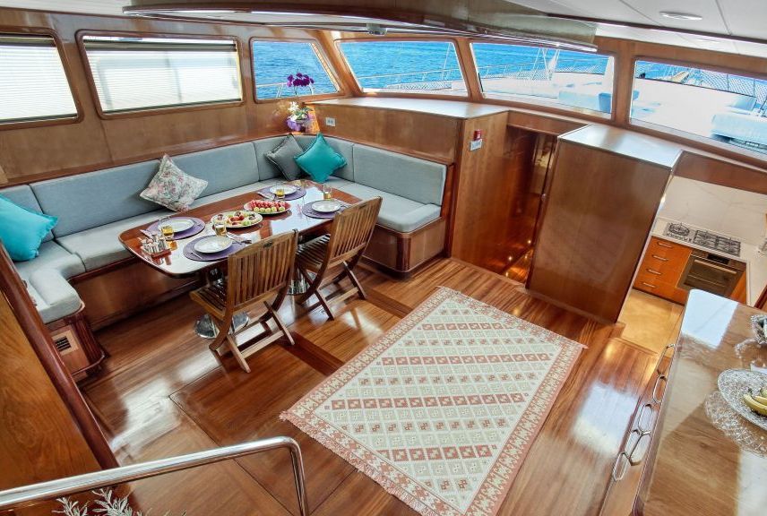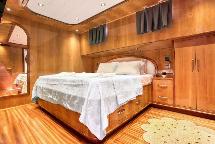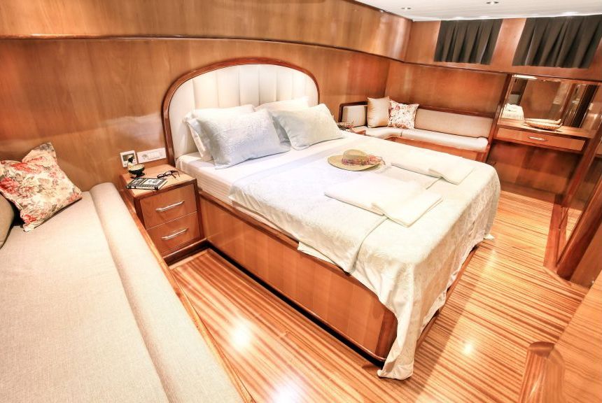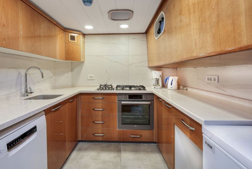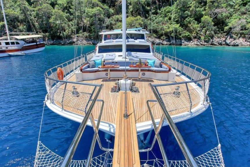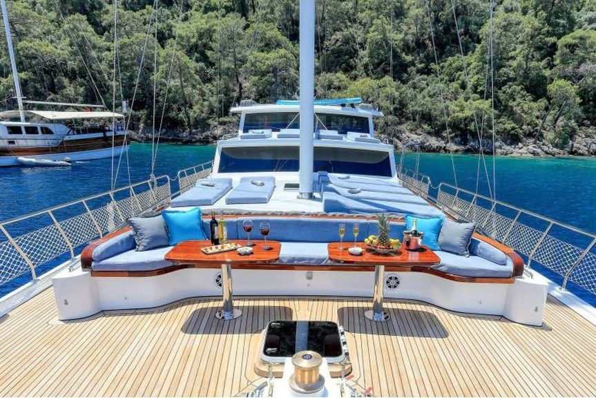 | Le Gulet Maya est une goélette en bois de 26 mètres, lancée en 2022, offrant une interprétation moderne de l’artisanat traditionnel turc. Le navire comprend quatre cabines — deux Master, une Double et une Twin — toutes dotées de salles de bain privatives, pouvant accueillir jusqu’à huit passagers. Sa largeur de 7 mètres garantit des intérieurs spacieux et de larges zones extérieures. Une équipe professionnelle de quatre membres — capitaine, chef et deux matelots — assure un service attentionné tout au long de la croisière. Le salon intérieur est élégamment aménagé avec un bar, une table à manger et des sièges confortables, alliant mobilier classique et contemporain. La cuisine entièrement équipée permet la préparation de plats savoureux. Les équipements de divertissement comprennent un système audio, une TV, des lecteurs DVD/CD, une machine à café, un refroidisseur à vin, des téléphones de cabine, une connexion Internet, un coffre-fort, des sèche-cheveux et la climatisation (disponible jusqu’à 18 heures par jour, y compris la nuit), garantissant un confort maximal. À l’extérieur, le Gulet Maya offre de larges espaces de bronzage, des zones ombragées pour les repas et une vaste poupe, idéale pour profiter des vues imprenables. Pour les amateurs de sports nautiques, un large choix d’activités est proposé : canoë, paddle, ski nautique, wakeboard, ringo, plongée avec tuba et pêche. Des transferts en mer et activités nautiques supplémentaires peuvent être organisés sur demande, grâce à un tender de service complet. Le navire est propulsé par deux moteurs Baudouin de 450 CV, soutenus par deux générateurs Onan de 25 kVA, offrant une vitesse de croisière de 10 nœuds et une vitesse maximale de 13 nœuds. Avec des réservoirs de carburant et d’eau de 5 000 litres et un dessalinisateur, le Maya permet de longues croisières sans interruption. Les systèmes de navigation et de communication (GPS, radar, pilote automatique, sondeur, dispositifs satellites) garantissent une sécurité et une fiabilité optimales en mer. Basé à Fethiye, le Gulet Maya invite ses hôtes à explorer les baies turquoise, les criques secrètes et les îles pittoresques de la Riviera turque. Il promet une expérience de Croisière Bleue luxueuse, alliant confort, élégance et aventure. |