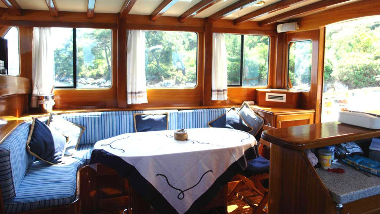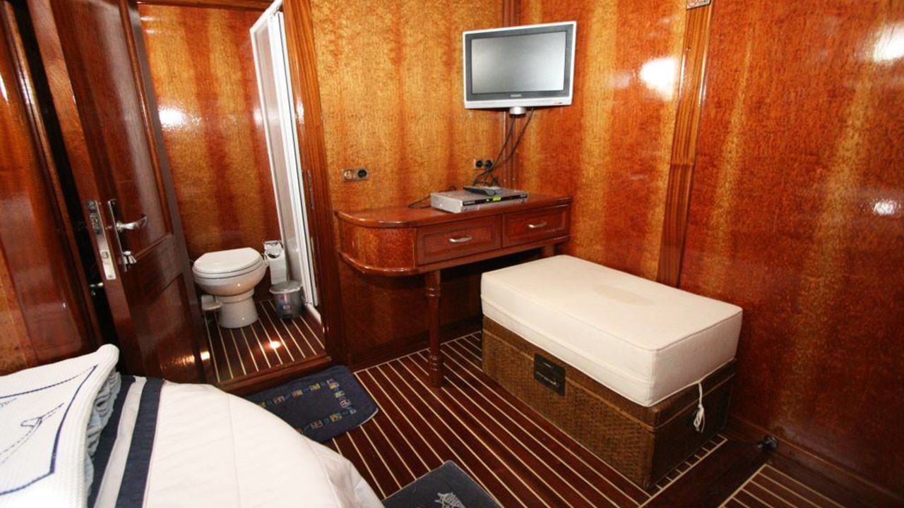 | Le Gulet Miramare est une élégante goélette traditionnelle en bois de 20 mètres, construite en 2007 et entièrement rénovée en 2022, alliant raffinement classique et confort moderne. Ce navire est doté de quatre cabines doubles, chacune avec salle de bain privative, et peut accueillir jusqu’à huit passagers. Il constitue un excellent choix pour les familles ou groupes d’amis souhaitant affréter un yacht privé en Turquie. Les passagers bénéficient d’un service personnalisé de haut niveau, assuré par un équipage dévoué de trois personnes. Celui-ci se charge de la préparation des repas, du nettoyage quotidien, des recommandations locales et de l’assistance générale tout au long de la croisière. Le Gulet Miramare est équipé d’un ensemble complet d’aménagements modernes destinés à assurer confort et divertissement à bord. On y trouve notamment la climatisation, un système multimédia comprenant télévision, lecteur DVD et système audio, ainsi qu’une connexion Wi-Fi, permettant aux hôtes de se détendre tout en restant connectés pendant leur séjour. Sur le pont, le Miramare offre un coin salon et repas convivial à l’arrière, des matelas de bronzage pour profiter du soleil, et un accès à divers équipements nautiques : annexe, canoë, matériel de plongée avec tuba et matériel de pêche, idéals pour explorer les eaux turquoise de la Méditerranée. Le navire est propulsé par un moteur de 265 CV, soutenu par un générateur de 12 kVA et un système électrique complet (24V, 220V). Sa vitesse de croisière de 8 nœuds garantit une navigation fluide et sûre. Au départ de Göcek, Fethiye, Marmaris ou Bodrum, le Gulet Miramare invite ses hôtes à découvrir les baies, criques et îles pittoresques de la côte sud-ouest de la Turquie, pour une Croisière Bleue inoubliable alliant sérénité, confort et découverte. |