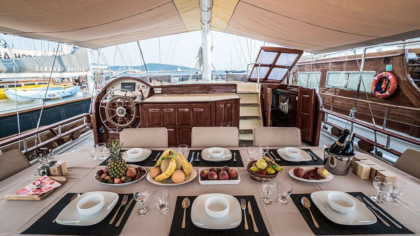 - Catering et boissons pour yacht Vous pouvez choisir des options de demi-pension ou de pension complète.