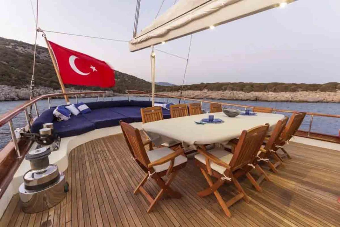 | Le Gulet Babylon est une goélette de luxe de 36 mètres, lancée en 2013 et rénovée en 2022, offrant un confort haut de gamme et une expérience de croisière prestigieuse. Elle dispose de 5 cabines — 1 cabine VIP, 1 cabine Master et 3 cabines doubles — pouvant accueillir jusqu’à 10 invités. Sa largeur exceptionnelle de 8,30 mètres garantit des intérieurs spacieux et des espaces extérieurs impressionnants pour la détente et les loisirs. Le pont propose de larges zones de bronzage, des coins salon ombragés, ainsi qu’un espace repas en plein air, idéal pour savourer des moments conviviaux face à la mer. À l’intérieur, le salon élégant comprend une table à manger, des sièges confortables et une cuisine entièrement équipée, créant une atmosphère à la fois raffinée et accueillante. Le Babylon offre une vaste sélection d’activités nautiques, incluant des tenders Yamaha de 100 CV, des stand-up paddles, des skis nautiques, des wakeboards, des ringos, des canoës, ainsi que du matériel de plongée et des équipements de pêche, garantissant plaisir et aventure pour tous. Propulsée par deux moteurs Man de 440 CV, et soutenue par deux générateurs (45 + 33 kVA), la goélette navigue en douceur à une vitesse de croisière de 12 nœuds. La climatisation, disponible jusqu’à 18 heures par jour, ainsi que les systèmes électriques 12V/24V/220V, assurent un confort optimal tout au long du séjour. Le Gulet Babylon est le choix idéal pour les groupes à la recherche d’une croisière bleue de luxe, alliant prestige, confort exceptionnel et large gamme d’activités nautiques, pour une expérience maritime inoubliable sur les eaux turquoise de la Riviera turque. |