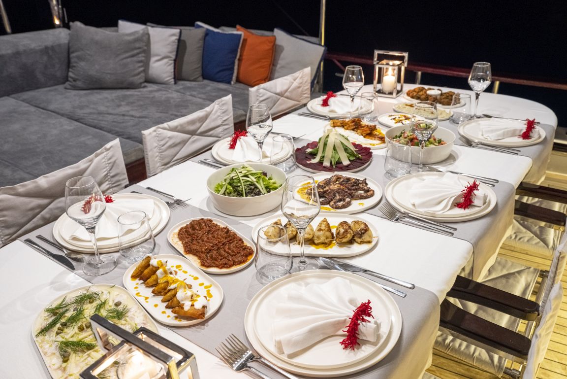 - Provisions et boissons à bord du yacht.