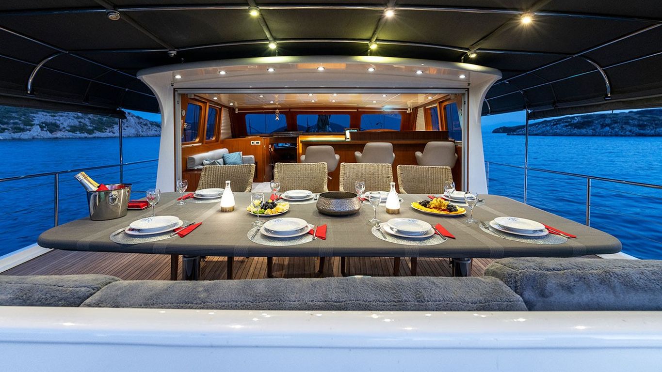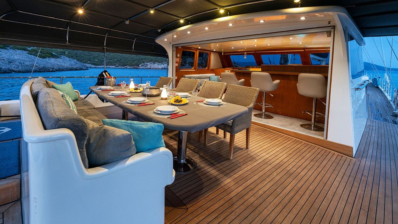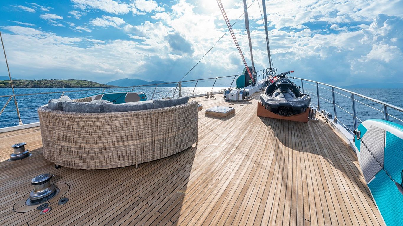 | Le Gulet Lucky You est une somptueuse goélette de luxe de 37 mètres, lancée en 2012, spécialement conçue pour les invités recherchant élégance, espace et confort moderne. Elle dispose de 5 cabines — 2 cabines VIP, 1 cabine Master et 2 cabines doubles — chacune équipée de salles de bain privatives, pouvant accueillir jusqu’à 10 invités dans le plus grand confort. Sa largeur généreuse de 7,40 mètres garantit des ponts spacieux et des intérieurs raffinés. Le pont extérieur se distingue par de larges zones de bronzage, des salons ombragés et une table à manger en plein air, idéale pour savourer les repas face à la mer. À l’intérieur, le salon élégant offre un espace repas, un coin détente et une cuisine moderne entièrement équipée, créant une ambiance à la fois luxueuse et accueillante. Pour les amateurs d’activités nautiques, le Lucky You propose une vaste gamme de sports aquatiques : un tender de 150 CV, des jet-skis, des stand-up paddles, des ringos, des canoës, ainsi que du matériel de plongée et des équipements de pêche. De quoi satisfaire à la fois les amateurs de détente et les passionnés d’aventure en mer. Propulsée par deux moteurs Man de 440 CV, soutenue par deux générateurs de 27 kVA, la goélette navigue à une vitesse de croisière de 10 nœuds. La climatisation, disponible 24h/24, ainsi que les systèmes électriques 12V/24V/220V, assurent un confort optimal tout au long du séjour. Le Gulet Lucky You est le choix idéal pour les familles et groupes souhaitant vivre une expérience de croisière bleue haut de gamme, alliant prestige, confort et divertissement, avec une vaste sélection d’équipements nautiques et des services de luxe pour des vacances inoubliables sur la Riviera turque. |