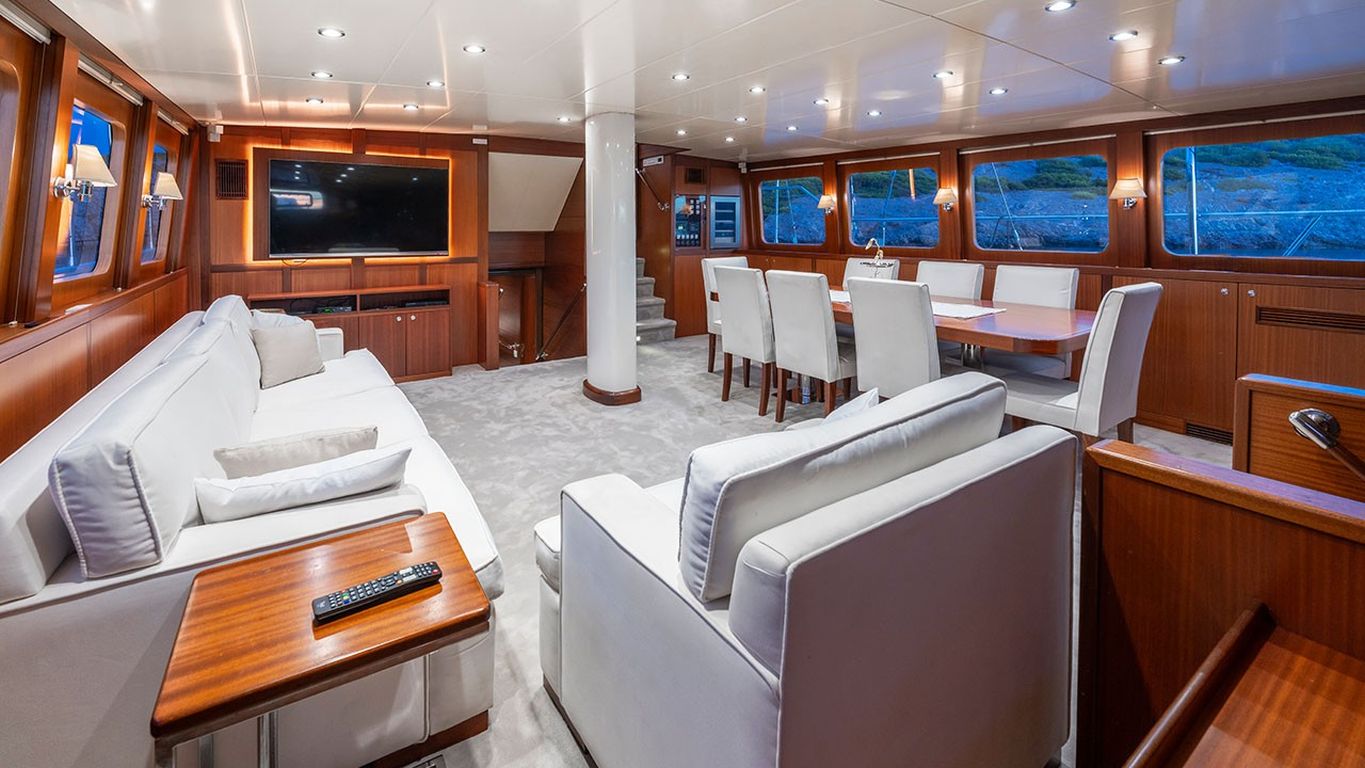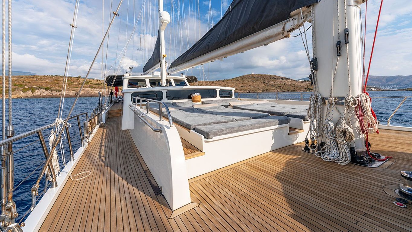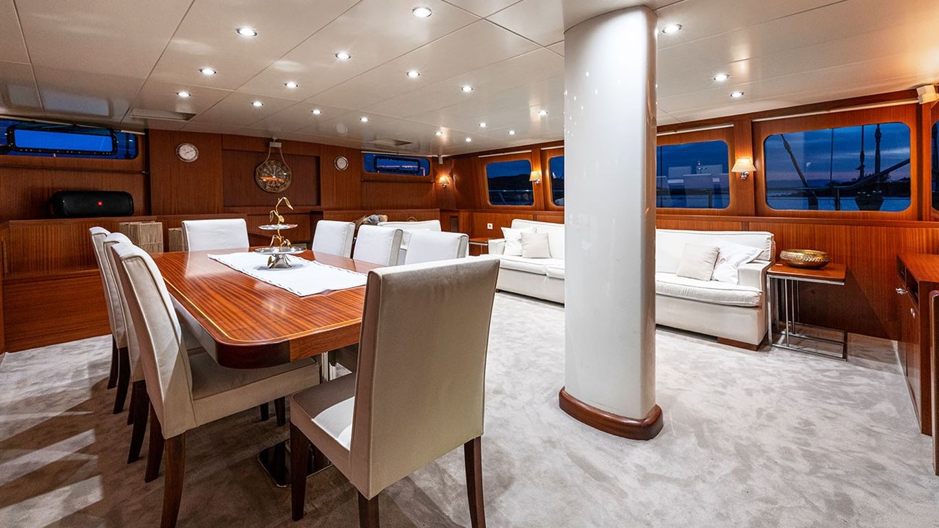 | Le Gulet Lucky You est une somptueuse goélette de luxe de 37 mètres, lancée en 2012, spécialement conçue pour les invités recherchant élégance, espace et confort moderne. Elle dispose de 5 cabines — 2 cabines VIP, 1 cabine Master et 2 cabines doubles — chacune équipée de salles de bain privatives, pouvant accueillir jusqu’à 10 invités dans le plus grand confort. Sa largeur généreuse de 7,40 mètres garantit des ponts spacieux et des intérieurs raffinés. Le pont extérieur se distingue par de larges zones de bronzage, des salons ombragés et une table à manger en plein air, idéale pour savourer les repas face à la mer. À l’intérieur, le salon élégant offre un espace repas, un coin détente et une cuisine moderne entièrement équipée, créant une ambiance à la fois luxueuse et accueillante. Pour les amateurs d’activités nautiques, le Lucky You propose une vaste gamme de sports aquatiques : un tender de 150 CV, des jet-skis, des stand-up paddles, des ringos, des canoës, ainsi que du matériel de plongée et des équipements de pêche. De quoi satisfaire à la fois les amateurs de détente et les passionnés d’aventure en mer. Propulsée par deux moteurs Man de 440 CV, soutenue par deux générateurs de 27 kVA, la goélette navigue à une vitesse de croisière de 10 nœuds. La climatisation, disponible 24h/24, ainsi que les systèmes électriques 12V/24V/220V, assurent un confort optimal tout au long du séjour. Le Gulet Lucky You est le choix idéal pour les familles et groupes souhaitant vivre une expérience de croisière bleue haut de gamme, alliant prestige, confort et divertissement, avec une vaste sélection d’équipements nautiques et des services de luxe pour des vacances inoubliables sur la Riviera turque. |