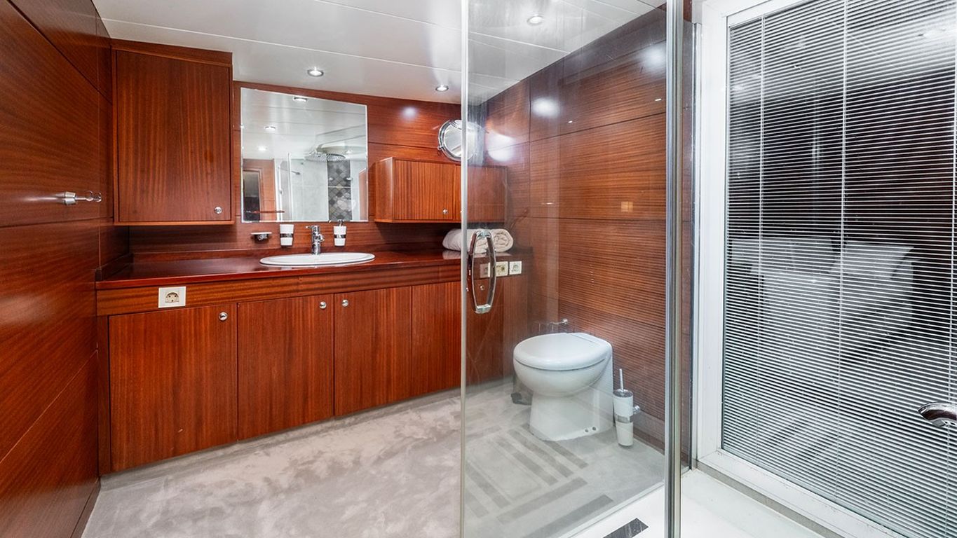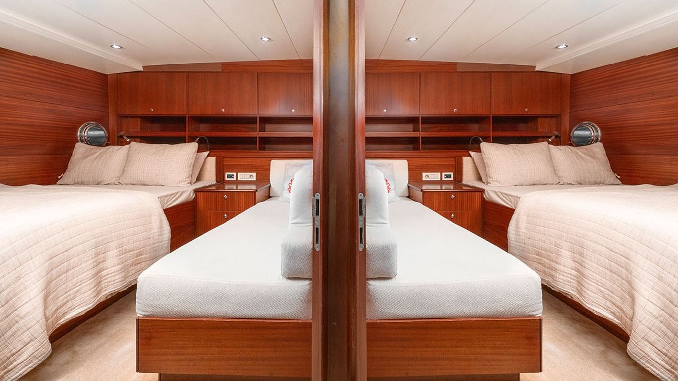 | Jusqu'à 10 personnes ; 2 VIP, 1 Master, 2 cabines doubles, cabine de douche et toilettes dans toutes les cabines, cabines d'équipage séparées. |