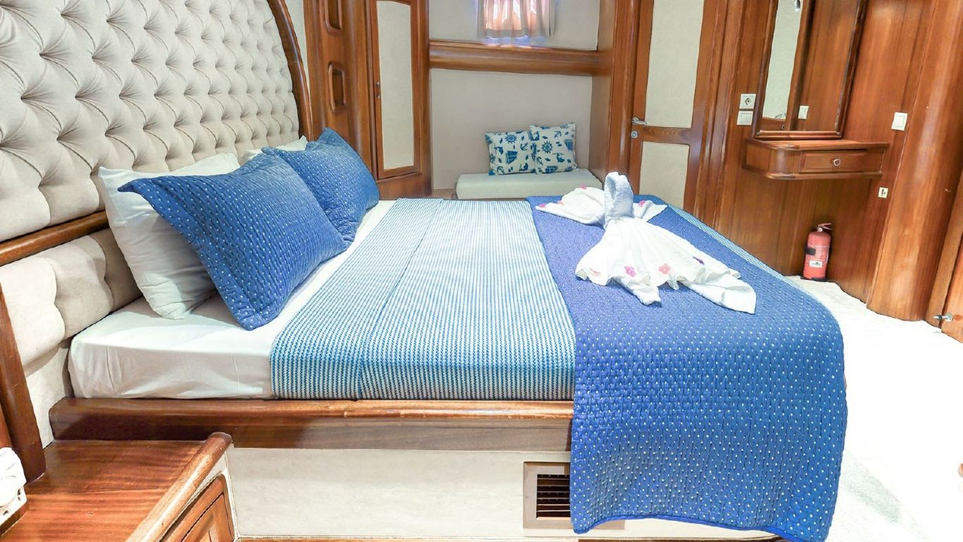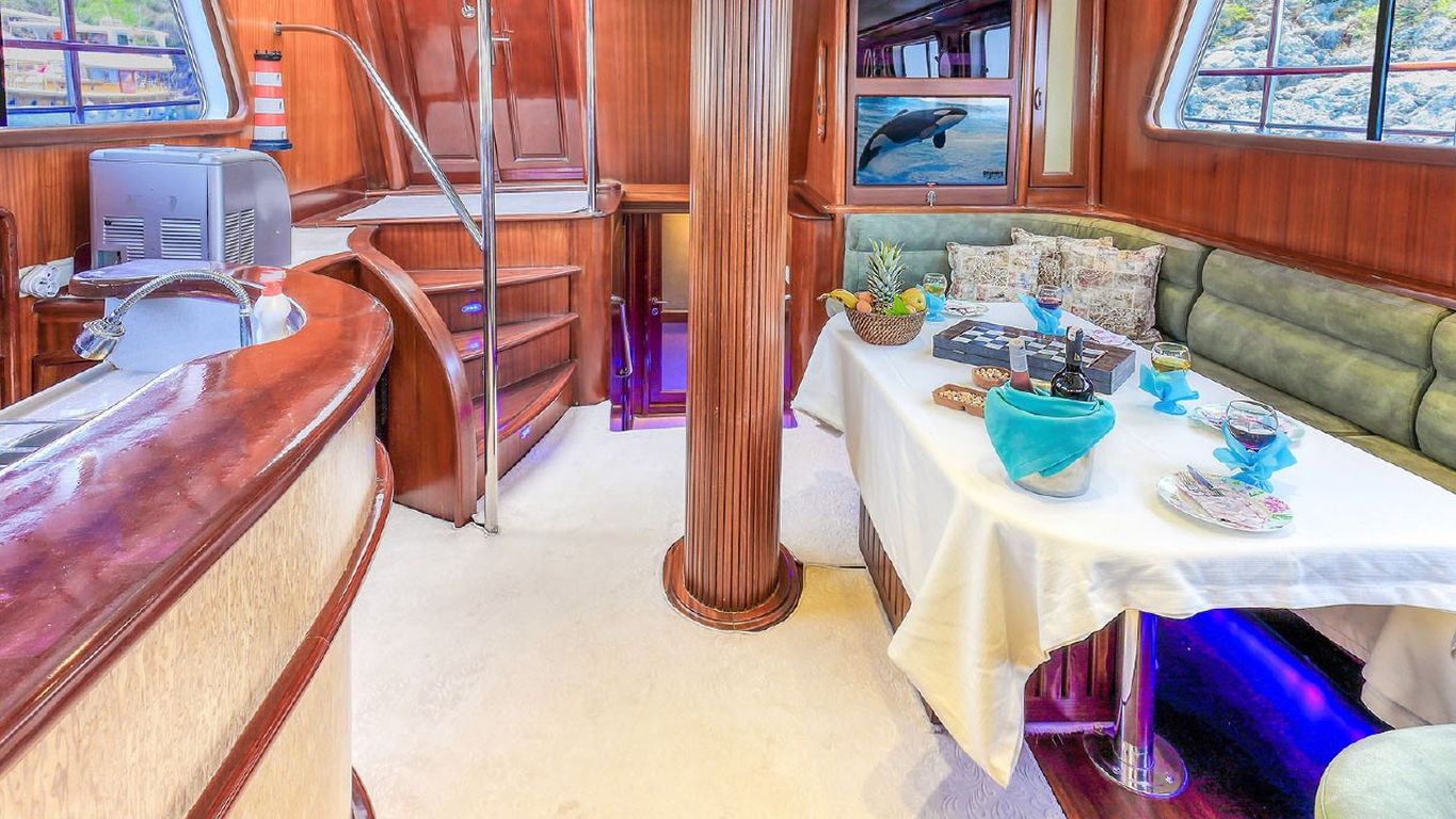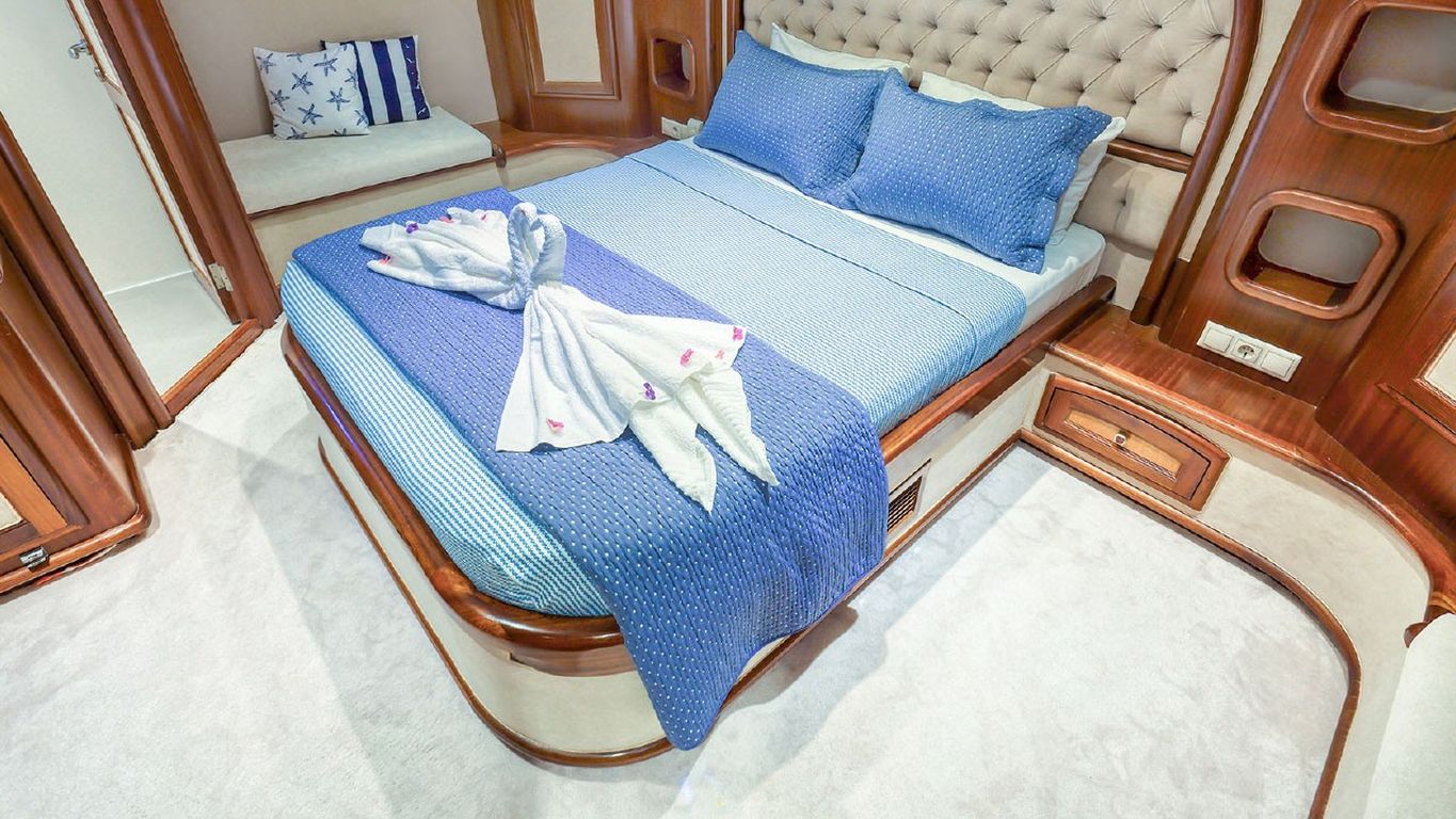 | Le Gulet Mehmet Ayaz est une goélette de 24 mètres, construite en 2008 et rénovée en 2019, conçue pour offrir à la fois confort et élégance en mer. C’est le navire idéal pour ceux qui recherchent une expérience raffinée et bien équipée. Dotée de 5 cabines — 2 cabines Master et 3 cabines doubles — elle peut accueillir jusqu’à 10 invités. Sa largeur de 6,60 mètres assure de grands volumes intérieurs ainsi que de spacieux ponts extérieurs pour la détente et la convivialité. Les espaces extérieurs comprennent une zone à manger ombragée par des parasols, des banquettes confortables et de larges espaces pour le bronzage. À l’intérieur, les invités découvriront un salon accueillant avec une table à manger, un coin salon et une cuisine entièrement équipée, offrant tout le confort nécessaire pour une croisière agréable. Pour les amateurs d’activités nautiques, le Mehmet Ayaz propose un vaste choix d’équipements : un tender de 30 CV, des stand-up paddles, des skis nautiques, des ringos, des canoës, ainsi que du matériel de plongée et des équipements de pêche, garantissant divertissement et aventure pour tous les âges. Propulsée par deux moteurs Delphin de 280 CV, et soutenue par deux générateurs (22,5 + 9 kVA), la goélette navigue en douceur à une vitesse de croisière de 8 nœuds. La climatisation, disponible 6 heures par jour, ainsi que les systèmes électriques 12V, 24V et 220V, assurent un confort optimal à bord. Le Gulet Mehmet Ayaz est un excellent choix pour les familles ou petits groupes, offrant une croisière bleue relaxante et pleine d’activités à travers les baies turquoise de la côte turque, combinant luxe discret, confort et authenticité maritime. |