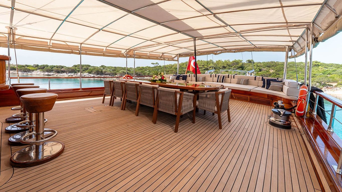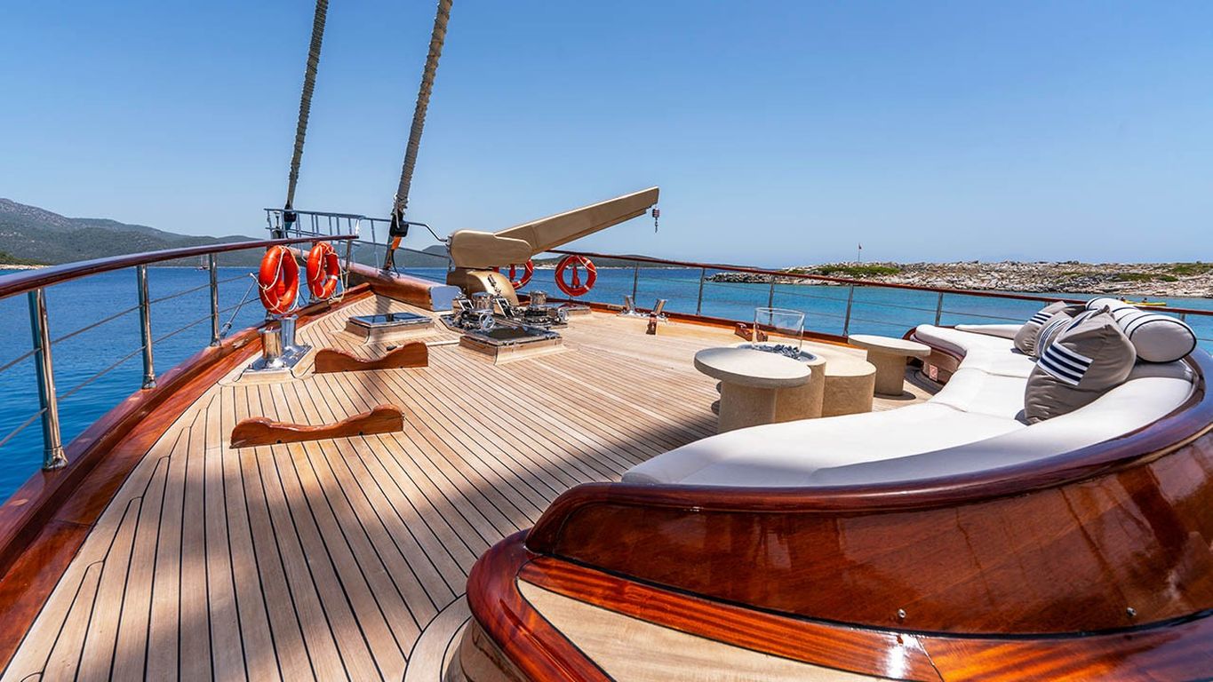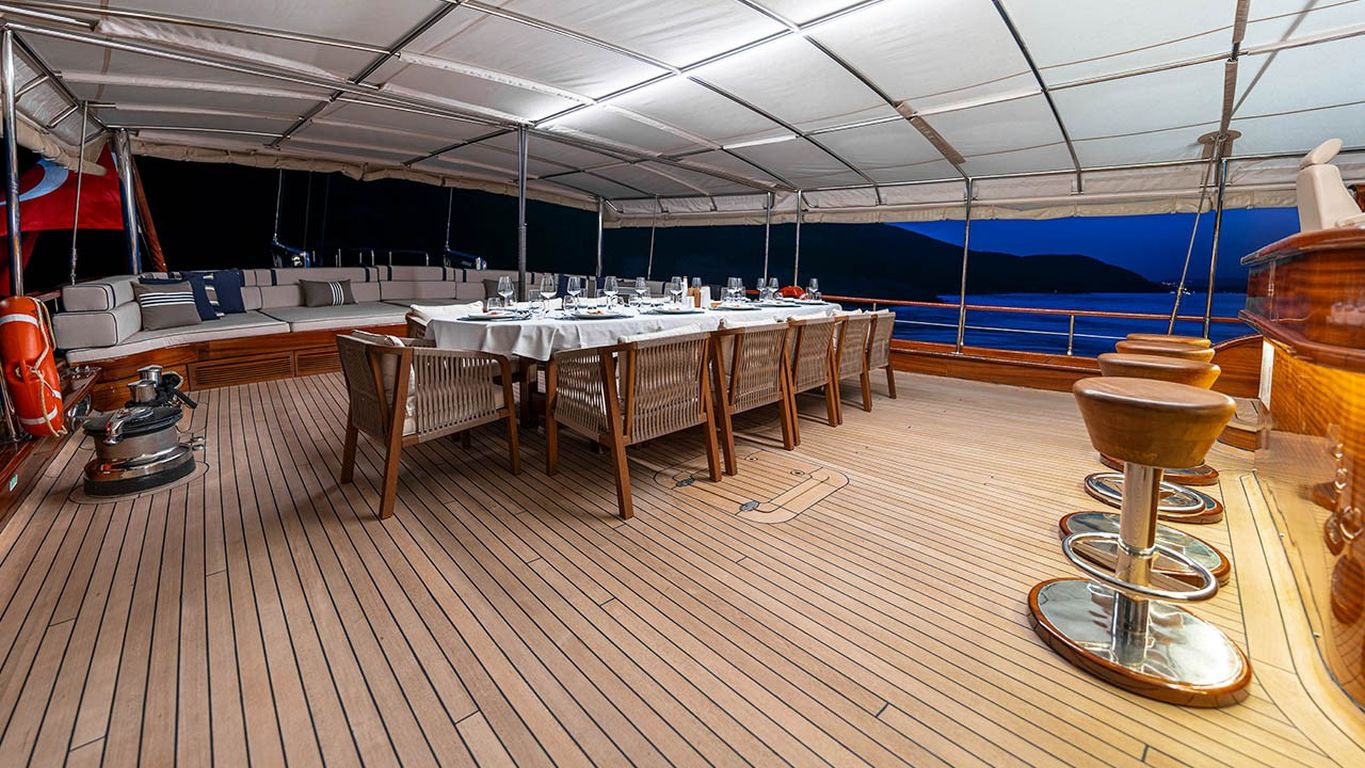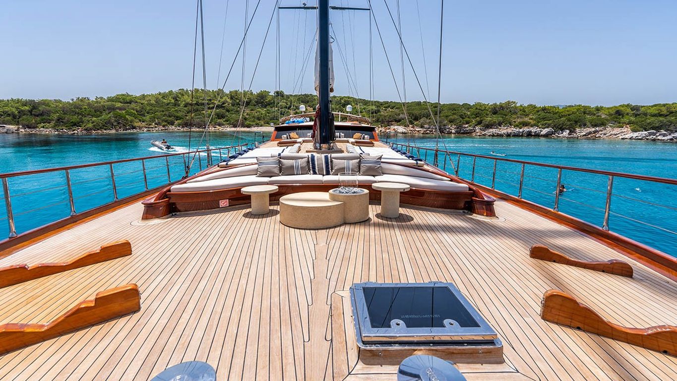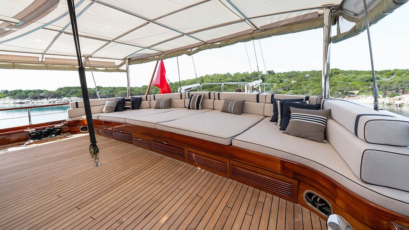 | Le Gulet Performance Fee est une goélette de luxe de 38 mètres, lancée à l’origine en 2011 et entièrement rénovée en 2024 pour la nouvelle saison, offrant un mélange parfait de prestige, confort et modernité. Dotée de 5 cabines — 2 cabines Master et 3 cabines doubles — elle peut accueillir jusqu’à 10 invités. Sa largeur impressionnante de 8,77 mètres garantit des espaces intérieurs généreux et de vastes zones extérieures dédiées à la détente. Le pont a été soigneusement conçu pour le bien-être des invités, avec des matelas de bronzage, des espaces ombragés confortables et une salle à manger en plein air pour profiter des repas face à la mer. À l’intérieur, le salon élégant présente une décoration contemporaine, une salle à manger spacieuse et un coin lounge convivial, créant une atmosphère raffinée et apaisante. Pour les amateurs de sports nautiques, le Performance Fee propose une vaste sélection d’équipements : un tender de 150 CV, des stand-up paddles, des skis nautiques, des wakeboards, des ringos, des bananes, des canoës, ainsi que du matériel de plongée et des équipements de pêche — garantissant des moments d’aventure et de plaisir sur l’eau. Propulsée par deux moteurs Volvo de 550 CV et soutenue par deux générateurs de 40 kVA, la goélette assure une navigation fluide à 12 nœuds. La climatisation disponible 24h/24, combinée à un système électrique complet (12V/24V/220V), garantit un confort optimal tout au long de la croisière. Le Gulet Performance Fee est le choix idéal pour les familles et groupes souhaitant vivre une expérience de croisière bleue à la fois luxueuse, confortable et dynamique, alliant relaxation, élégance et activités nautiques sur les eaux cristallines de la Méditerranée. |