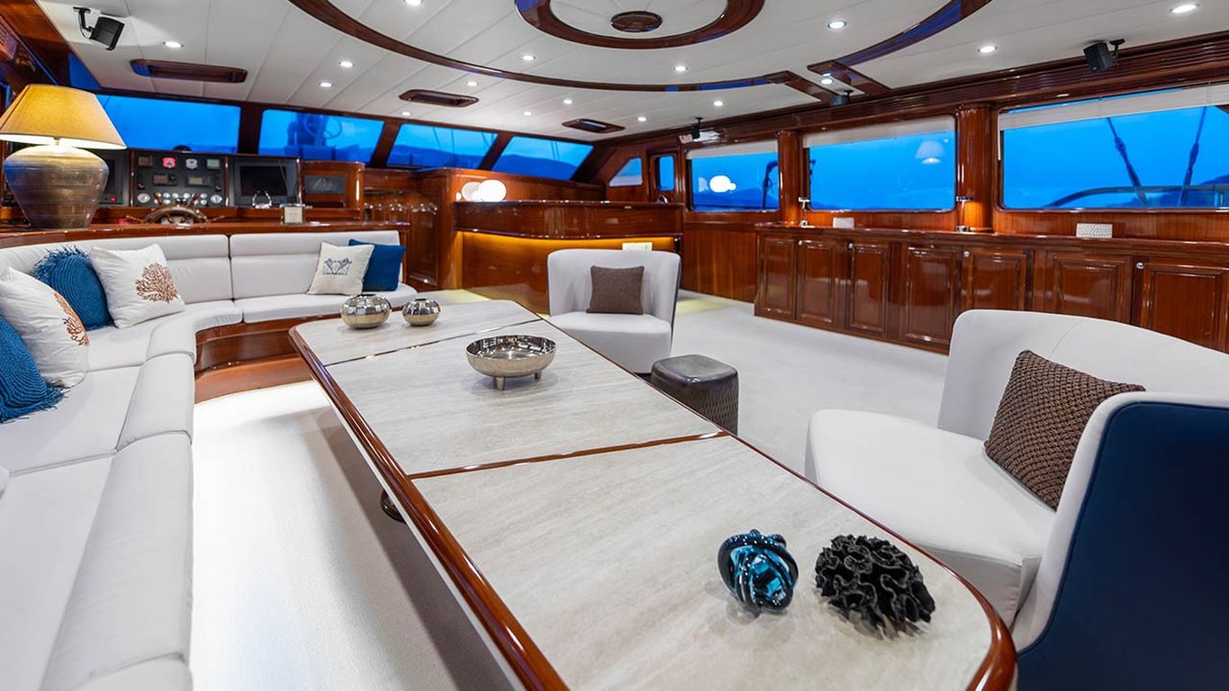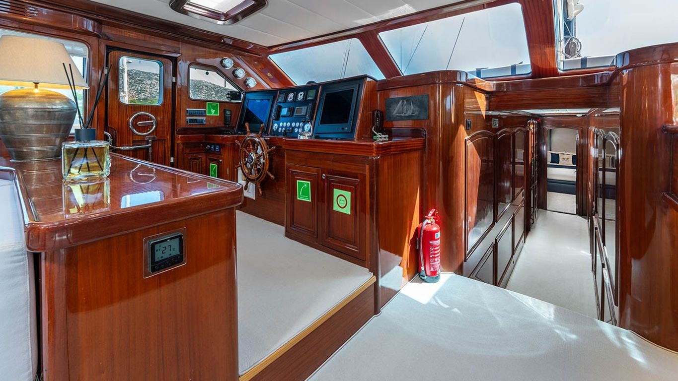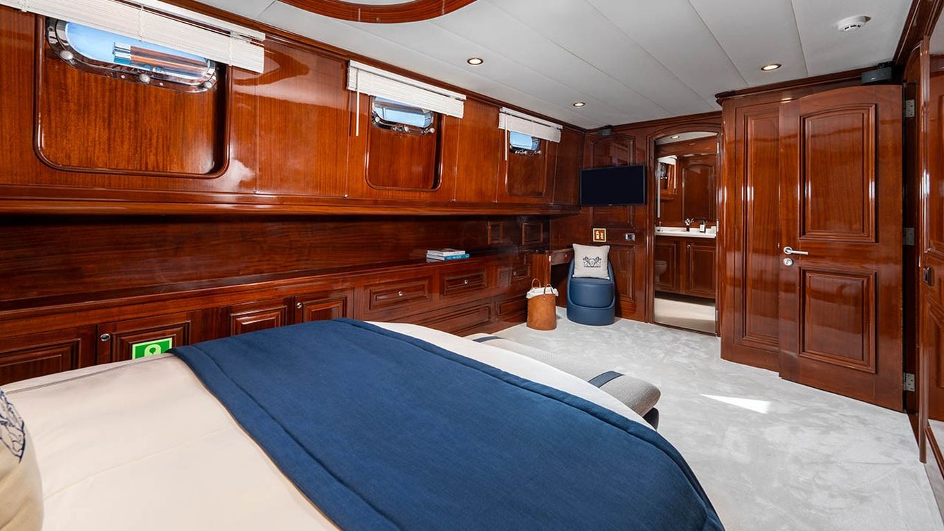 | Jusqu'à 12 personnes ; 2 cabines principales, 3 cabines doubles, cabine de douche et toilettes dans toutes les cabines, cabines d'équipage séparées. |