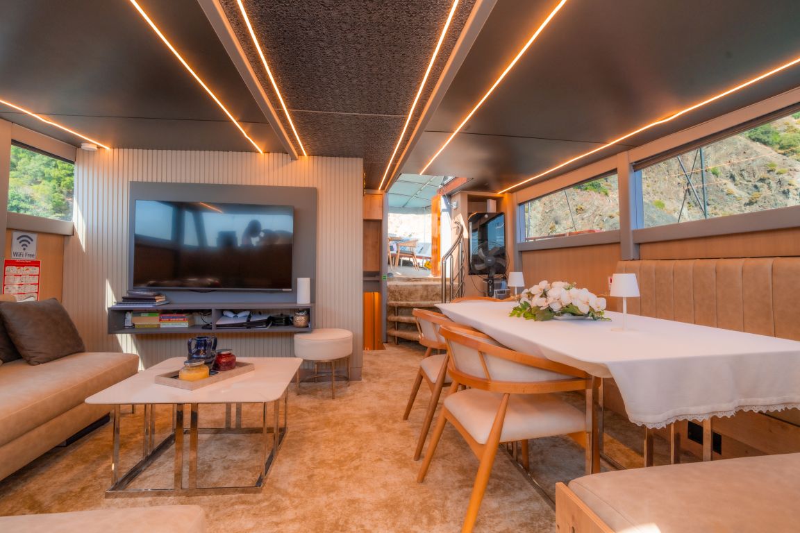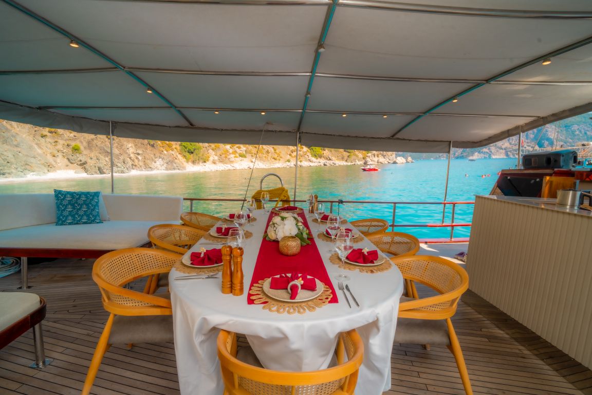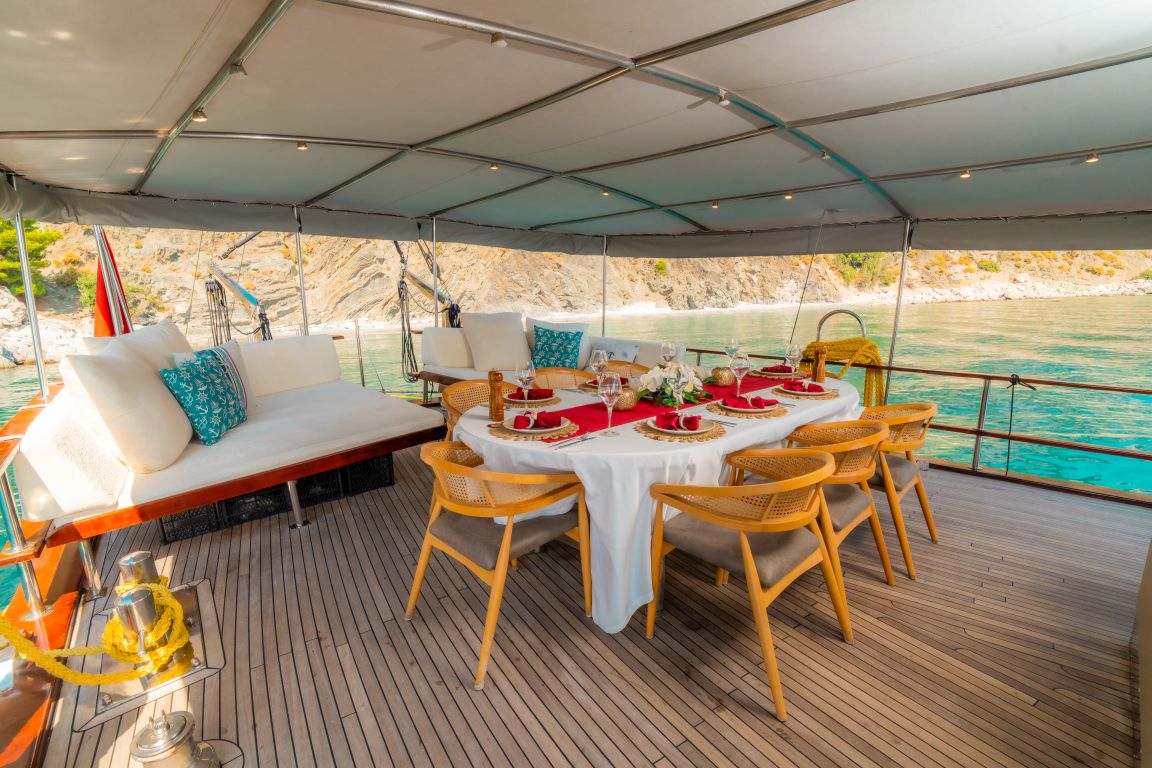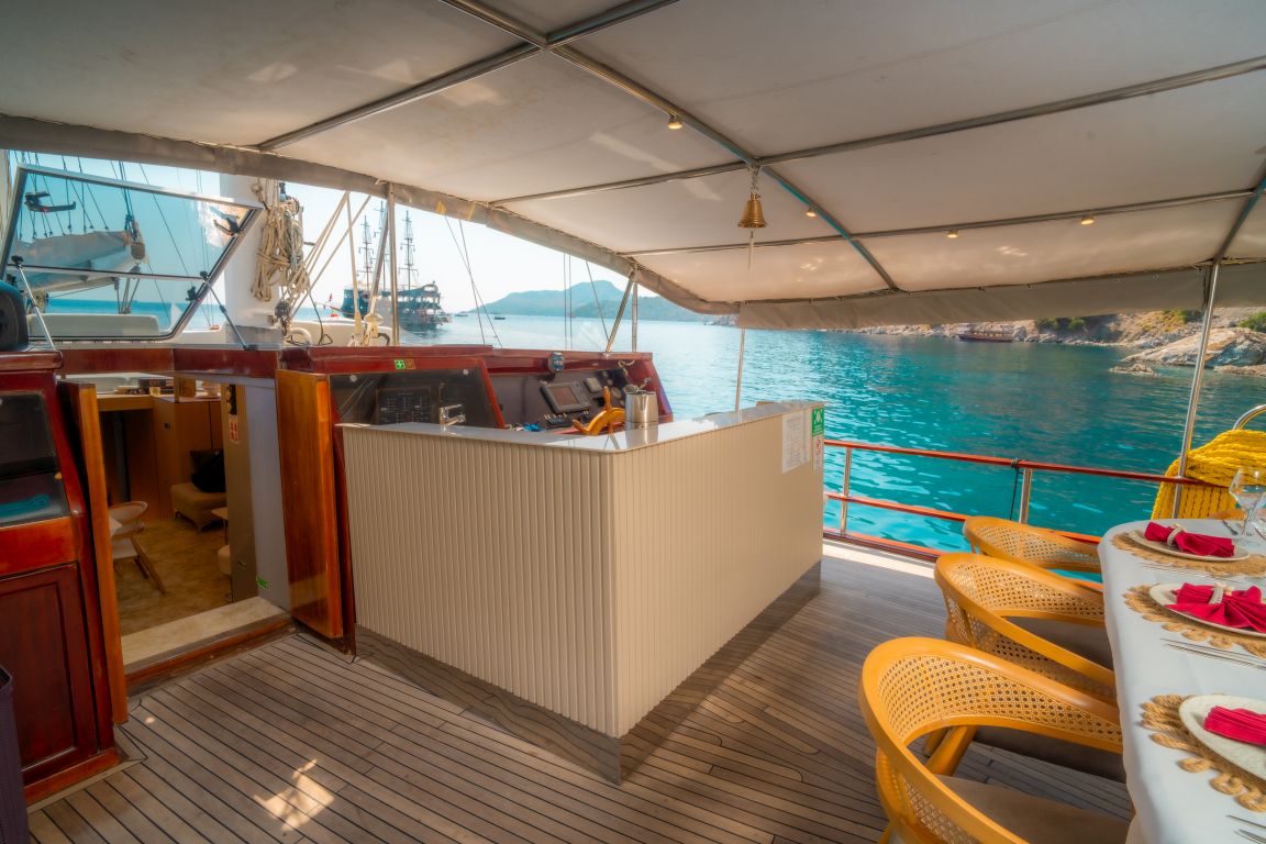 | Le gulet Princess Alize est un voilier en bois élégant de 29 mètres offrant confort, style et une atmosphère chaleureuse aux familles et aux groupes souhaitant vivre une mémorable croisière bleue en Turquie. Avec 5 cabines spacieuses (2 Master, 2 Double et 1 Twin) pour accueillir jusqu’à 10 personnes, elle constitue un excellent choix pour des croisières privées le long des côtes égéennes et méditerranéennes. Chaque cabine dispose de sa propre salle de bain et de la climatisation, garantissant un séjour agréable tout au long du voyage. Son vaste pont extérieur propose de grands espaces de vie en plein air, comprenant une zone à manger ombragée, des sièges confortables et de larges espaces pour bronzer. La poupe est idéale pour de longues soirées conviviales, tandis que la proue offre un coin paisible pour profiter du soleil et des vues sur la mer. Princess Alize associe confort et ambiance chaleureuse. Son équipage expérimenté assure un service attentif – des repas délicieux au ménage quotidien et à la planification de l’itinéraire – pour une expérience de croisière fluide et agréable. Pour les amateurs d’activités nautiques, le gulet propose des paddleboards, un canoë, du matériel de snorkeling et divers jeux aquatiques, créant des moments amusants pour les adultes comme pour les familles avec enfants. Au départ de Bodrum, Princess Alize navigue vers les plus beaux itinéraires, notamment Gökova, Hisarönü, Göcek, Marmaris, Fethiye et, en option, les îles grecques telles que Rhodes et Symi. Des baies cristallines, des criques paisibles et des couchers de soleil inoubliables rendent ce voyage absolument unique. Si vous recherchez une location privée de gulet de 5 cabines alliant confort et charme, Princess Alize est un excellent choix offrant qualité et atmosphère conviviale. |