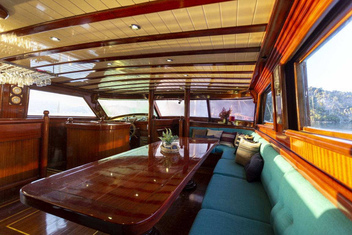 offrez-vous l'expérience luxueuse de notre yacht, doté d'un auvent avant pour plus de confort et de la commodité de machines à café spéciales. propulsé par 2 moteurs iveco de 280 ch et des générateurs de 35 kW, Goélette Yucebey 1 offre une expérience de navigation douce et puissante. équipé pour la navigation avec traceur de cartes, boussole, VHF, GPS et nawtext, bateau Zodiac de 70 CV, dessalinisateur et système d'éclairage sous-marin disponibles, navigation : Goélette Yucebey 1 assure un voyage sûr et agréable. avec une capacité de carburant de 3 000 litres et une capacité d'eau de 6 000 litres, vous pouvez embarquer pour de longues aventures. |
