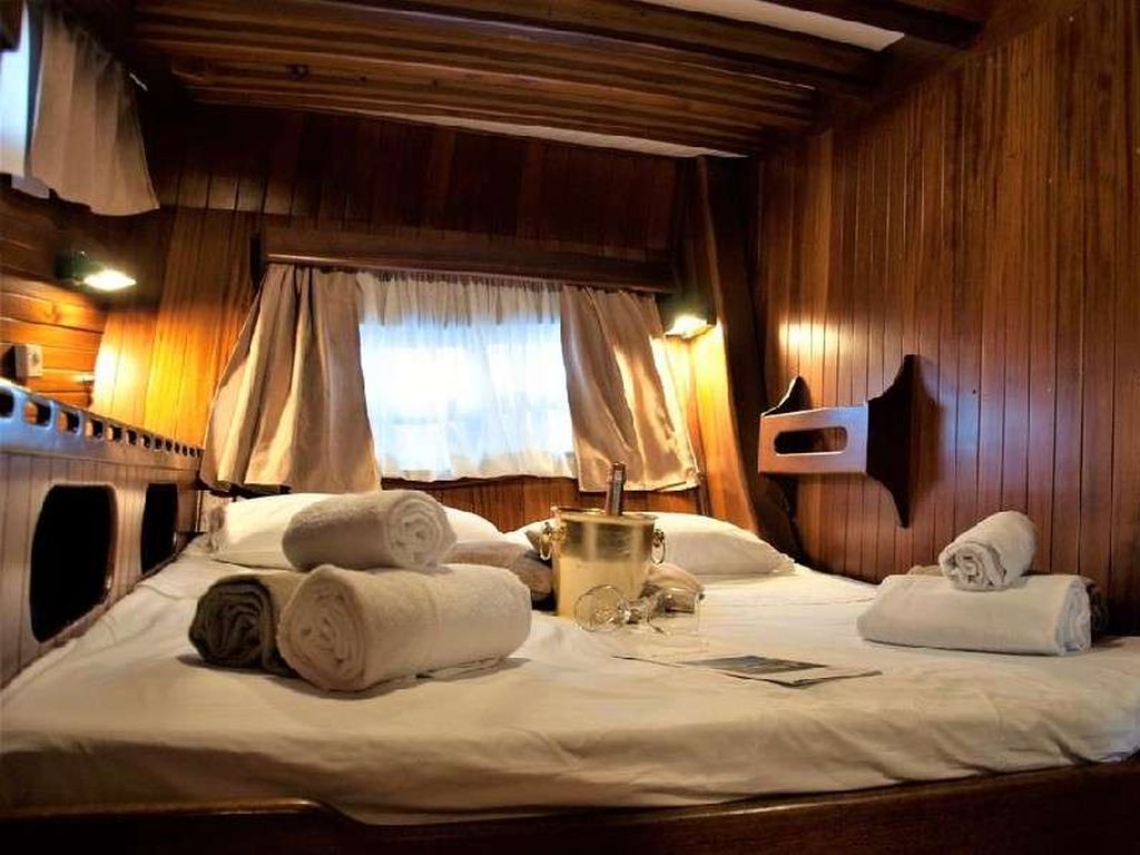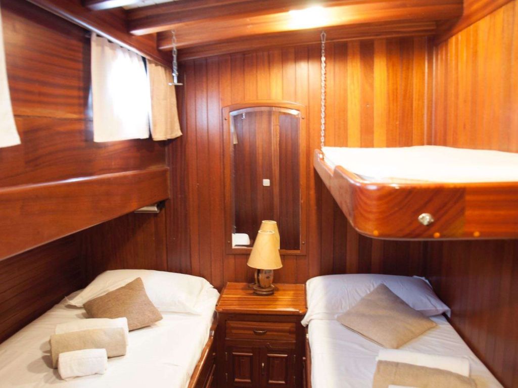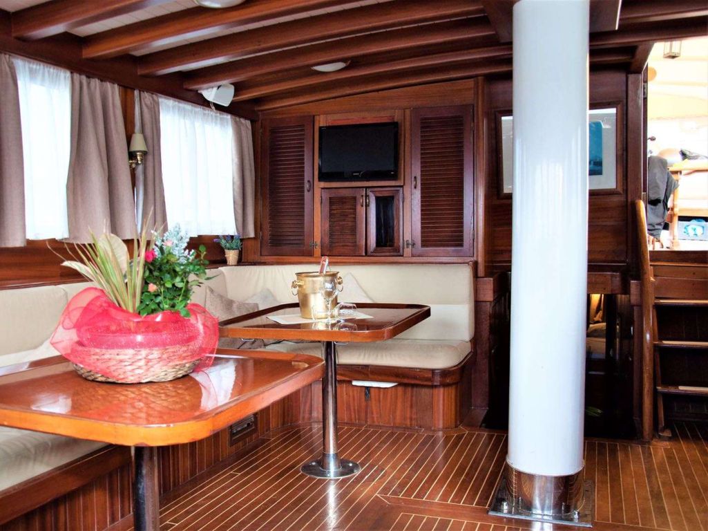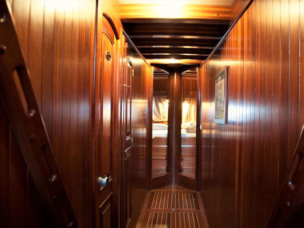Jusqu'à 12 personnes ; 1 cabine principale, 2 cabines doubles, 2 cabines twin, cabine de douche et toilettes dans toutes les cabines, cabines d'équipage séparées.