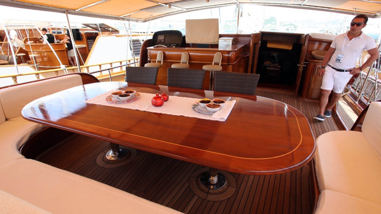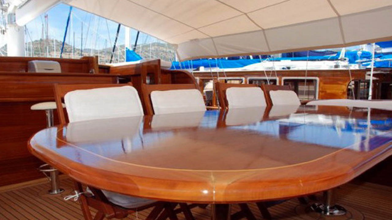 | Le Gulet Sema Tuana est une goélette de luxe de 32 mètres, lancée en 2008 et rénovée en 2017, offrant une expérience de croisière alliant élégance, confort et aventure. Le navire dispose de 6 cabines — 2 suites Master, 2 cabines doubles et 2 cabines twin — pouvant accueillir jusqu’à 12 invités. Chaque cabine est entièrement équipée, avec climatisation, salle de bain privative et décoration élégante, assurant un séjour confortable et raffiné. Le pont comprend un vaste espace de repas en plein air, des salons extérieurs avec coussins, ainsi que de larges zones de bronzage pour se détendre sous le soleil. À l’intérieur, le salon est décoré avec goût et doté de commodités modernes, créant une atmosphère chaleureuse et sophistiquée. Pour les amateurs d’activités nautiques, le Sema Tuana propose une vaste sélection d’équipements : un tender de 70 CV, un jet-ski, des skis nautiques, un wakeboard, un canoë, ainsi que du matériel de plongée et des équipements de pêche, offrant un parfait équilibre entre détente et aventure. Propulsée par deux moteurs Scania de 370 CV et équipée de deux générateurs de 22,5 kVA, la goélette assure une vitesse de croisière de 10 nœuds. La climatisation, disponible 24h/24, ainsi que les systèmes électriques 12V/24V/220V, garantissent un confort optimal en toutes circonstances. Le Gulet Sema Tuana est le choix idéal pour ceux qui recherchent luxe, style et évasion, offrant une expérience de croisière bleue incomparable sur les eaux turquoise de la Riviera turque. |