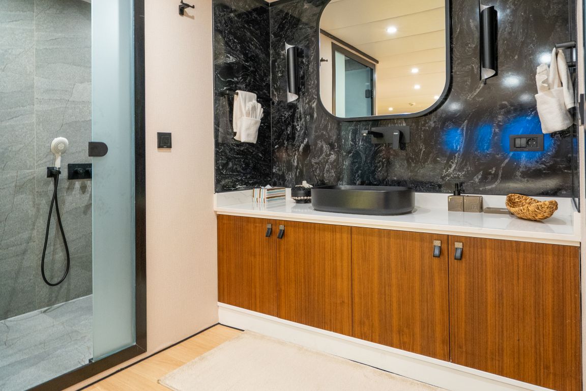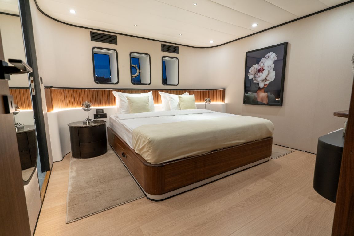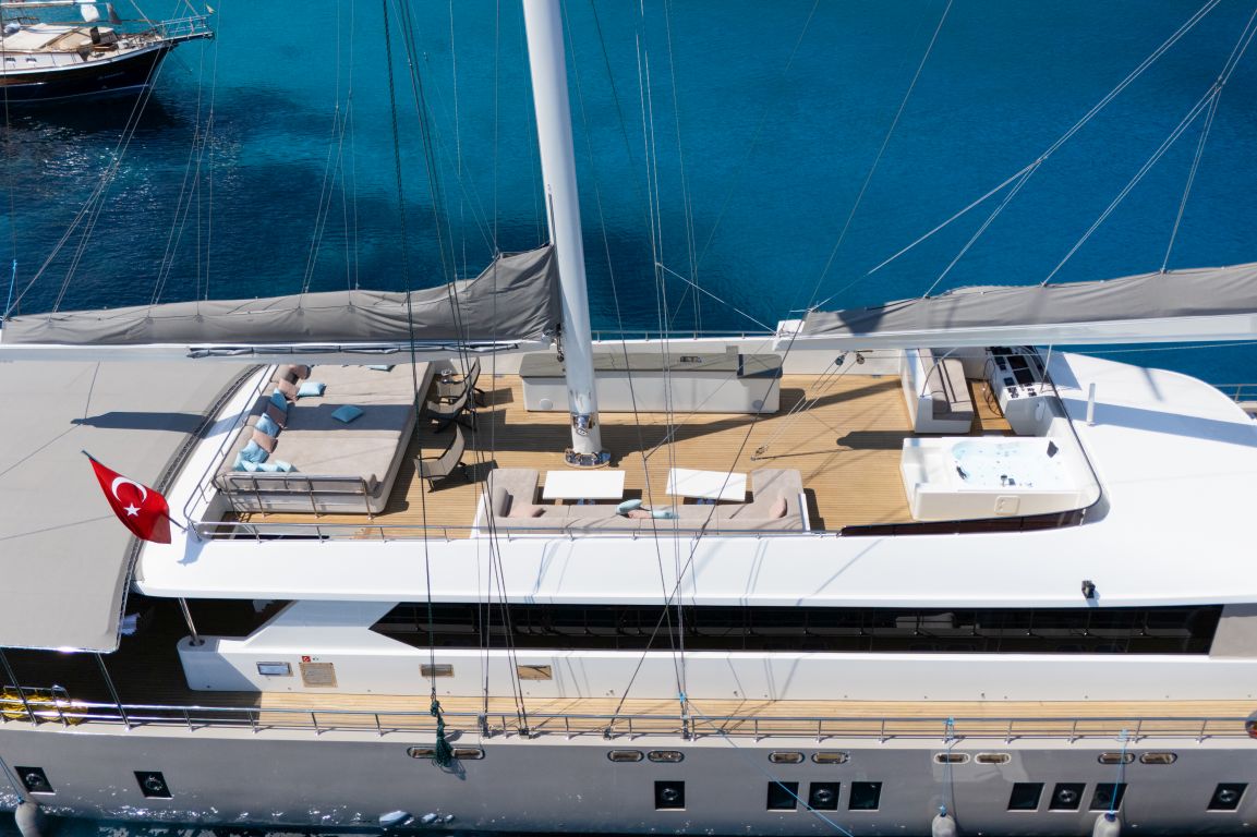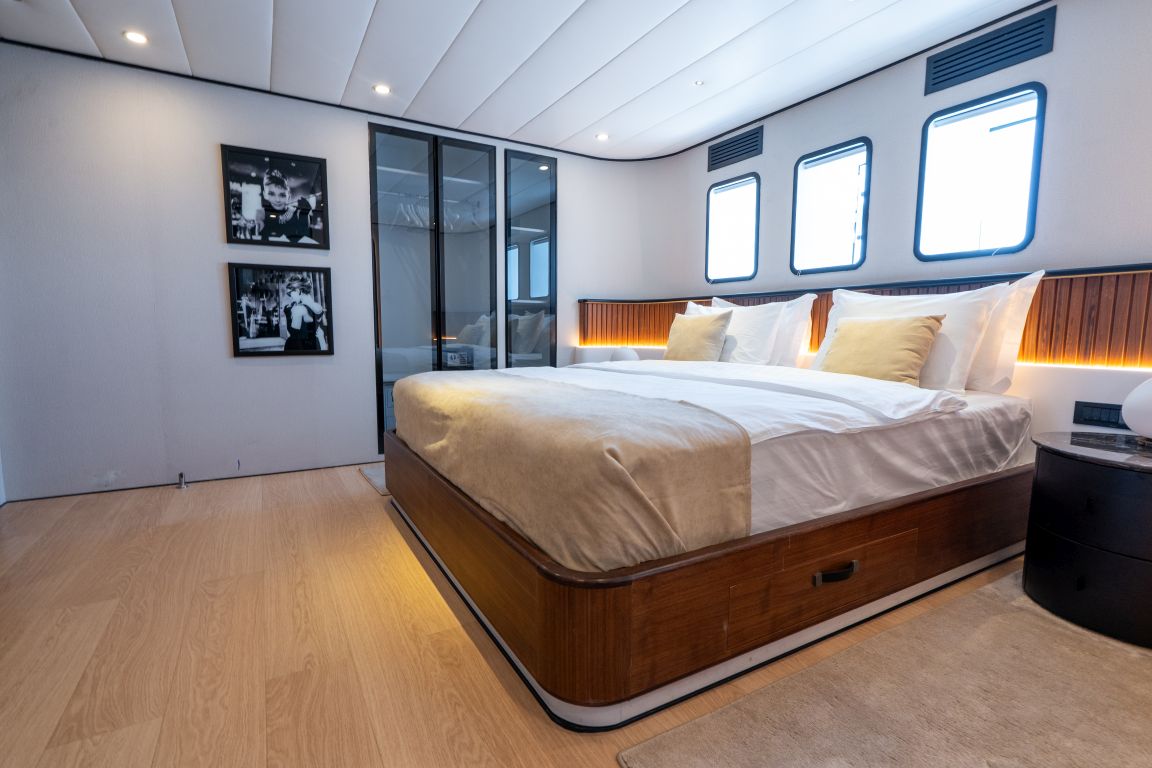 | Le Gulet De Love est un voilier de luxe exceptionnel de 50 mètres, lancé en 2024, incarnant l’élégance contemporaine et le raffinement ultime des croisières VIP. Avec 7 cabines — comprenant 1 suite Master et 6 cabines doubles —, elle peut accueillir jusqu’à 14 invités dans un confort absolu. Chaque cabine dispose de sa salle de bain privative, d’un design moderne et d’une climatisation intégrale disponible 24h/24. Sa largeur impressionnante de 10 mètres garantit des espaces de vie généreux, incluant de vastes ponts de bronzage, des zones de repas ombragées, et des salons élégants propices à la détente. Le salon intérieur, à la fois contemporain et raffiné, est équipé d’une table à manger, d’un système de divertissement moderne et d’un aménagement haut de gamme. Le De Love met à disposition une sélection premium d’activités nautiques, comprenant un canot de 90 CV, un tender haute puissance de 700 CV, un Big Mable, un jet-ski, des stand-up paddleboards, skis nautiques, wakeboards, canoë, ainsi que du matériel de plongée et de pêche. Propulsé par deux moteurs Volvo Penta de 750 CV et soutenu par trois générateurs (50 + 50 + 26 kVA), il assure une vitesse de croisière de 10 nœuds tout en offrant une navigation fluide et silencieuse. Le Gulet De Love incarne le summum du luxe maritime, combinant grandeur, performance et aventure pour une expérience de croisière bleue VIP inoubliable à travers les eaux turquoise de la Méditerranée. |