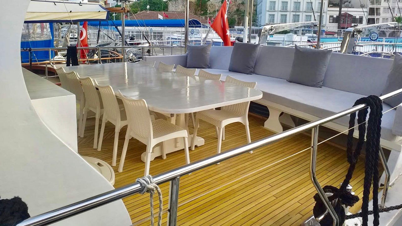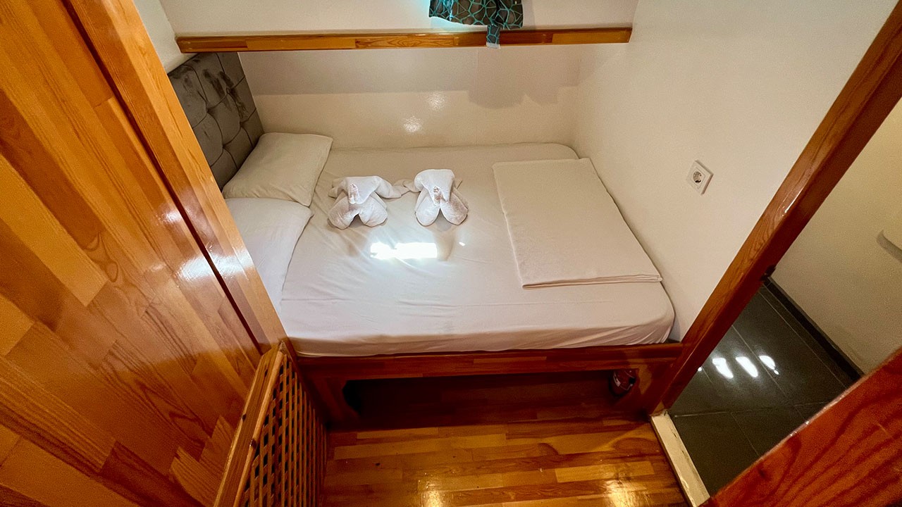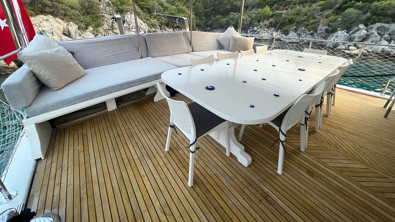 | Le Gulet Simi est une goélette de 26 mètres, construite en 2015 et rénovée en 2022, offrant une combinaison harmonieuse de confort, d’espace et de convivialité. Elle dispose de 8 cabines doubles, pouvant accueillir jusqu’à 16 passagers, chacune équipée d’une salle de bain privative et de la climatisation, disponible 6 heures par jour pour garantir une atmosphère agréable à bord. Avec une largeur de 6,5 mètres, le Simi propose de spacieux ponts parfaitement agencés : espaces repas ombragés, zones lounge confortables et larges bains de soleil pour se détendre tout au long de la croisière. Le salon intérieur, accueillant et bien aménagé, comprend un coin repas et une cuisine entièrement équipée, créant une ambiance chaleureuse et détendue. Côté loisirs, le Gulet Simi met à disposition une sélection d’équipements nautiques : un tender de 30 CV, des paddleboards, des canoës, ainsi que du matériel de snorkeling et de pêche — parfaits pour profiter pleinement des eaux turquoise. Propulsée par un moteur MAN de 500 CV et soutenue par un générateur de 22,5 kVA, la goélette navigue à une vitesse de croisière de 9 nœuds, alliant puissance et stabilité. Le Gulet Simi est le choix idéal pour les groupes moyens souhaitant vivre une croisière bleue confortable, conviviale et abordable, le long des côtes pittoresques de la Turquie. |