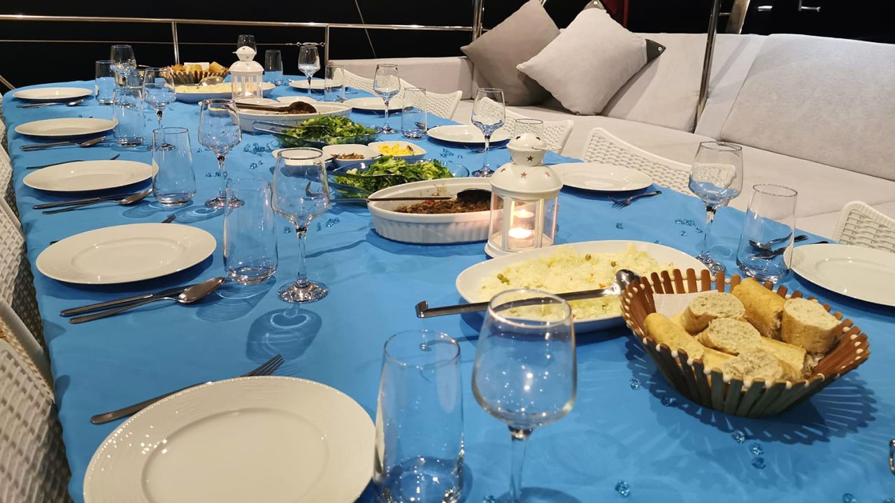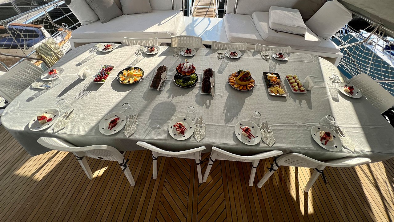 - Catering et boissons pour yacht Vous pouvez choisir des options de demi-pension ou de pension complète.