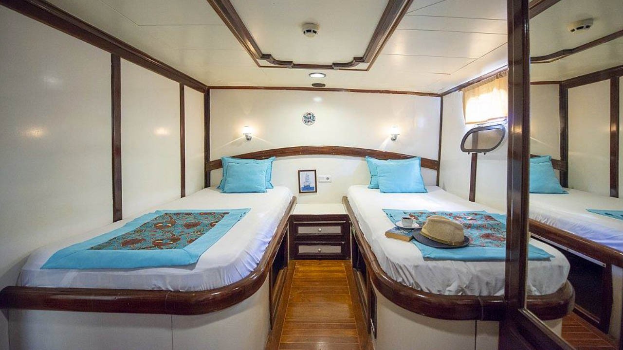 | Jusqu'à 16 personnes ; 4 cabines doubles, 4 cabines twin, cabine de douche et toilettes dans toutes les cabines, cabines d'équipage séparées. |