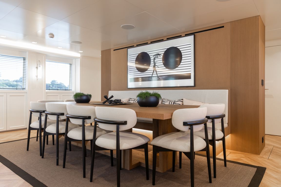 Capacité jusqu’à 12 personnes; 1 VIP, 1 Master, 1 Doubles, 2 Cabines triples, A/C, cabine de douche et toilettes de type domestique dans toutes les cabines, cabines d’équipage séparées. |