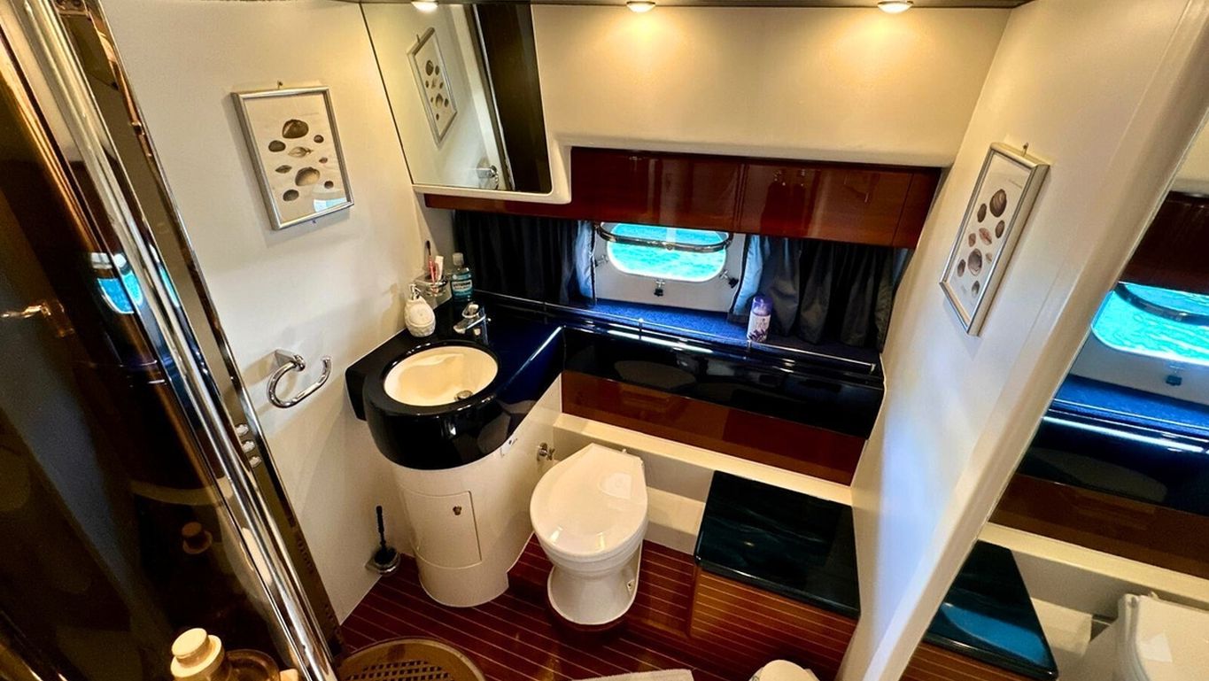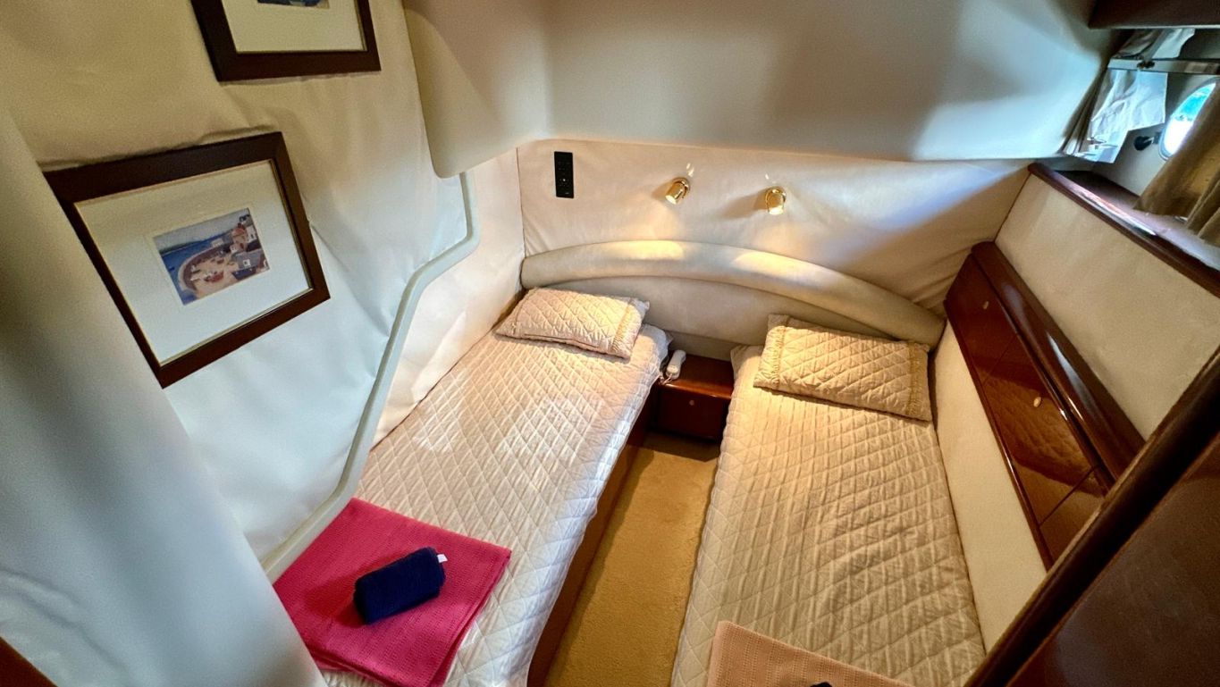 Jusqu'à 4 passagers ; 3 cabines. Toutes les cabines sont équipées d'une salle de bain, de toilettes et de la climatisation. Cabines séparées pour l'équipage. |